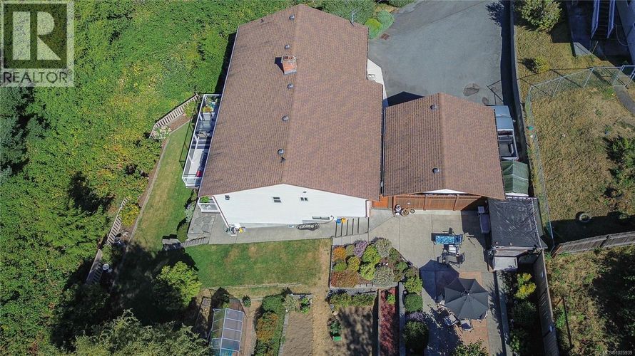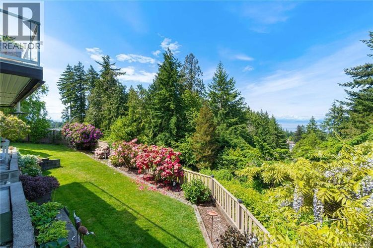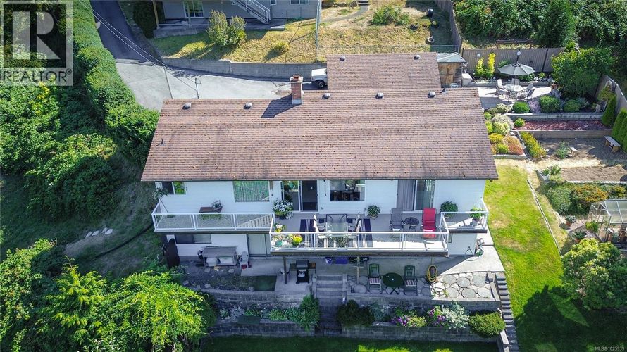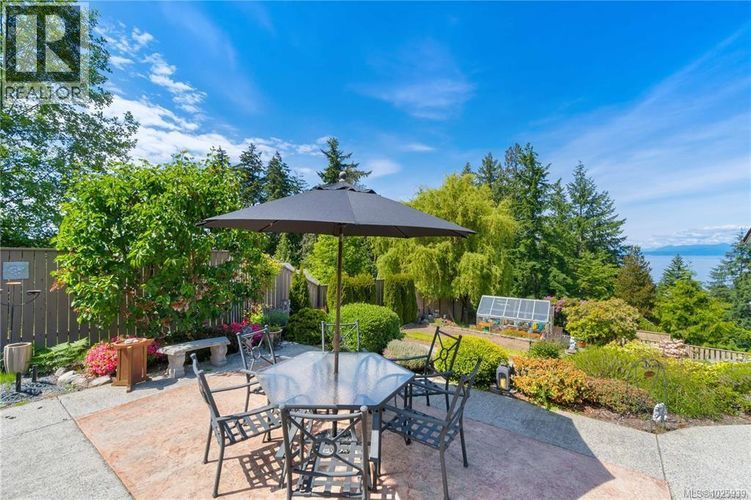 For 40 years, 2 generations of the same family have called this home. The front door view is the large driveway & the neighbour’s home, but from the deck, the large upper & lower patios, the garden, & lower yard boasts complete privacy with beautiful views of the ocean, trees, and gardens. This well maintained, level entry home with a fully finished, walkout basement, is situated on 0.65 of an acre. It offers 5 bedrooms, 3 bathrooms, a sitting room off a new kitchen (2021). Downstairs has plenty of storage as well as a large family room, built in cedar sauna, and a large workshop with a ventilation system, and 220 wiring. There is a double sided, heatilator fireplace, 2 hot water tanks, main floor windows were replaced with Centra vinyl windows and patio doors in 2018. The undeveloped portion of the property offers the potential to add a carriage home, or even to subdivide. (id:26452)