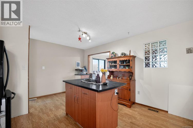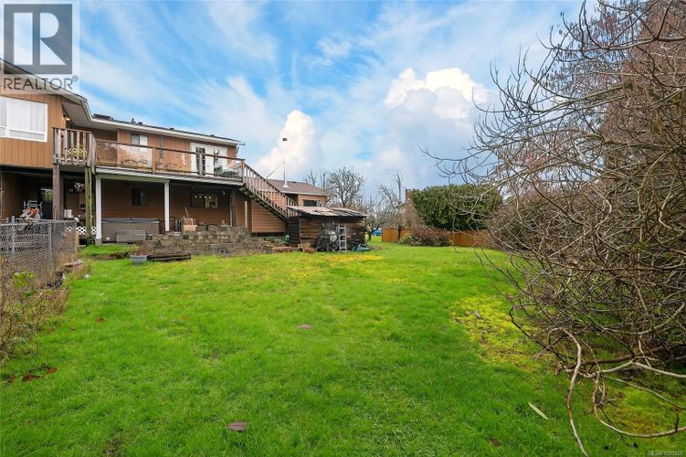 This bright Saltair home, just two blocks from the beach, offers coastal living with incredible versatility. Enjoy ocean views from the upper patio, accessible from both the primary bedroom and sunroom. Thoughtful features include oak hardwood in the primary, a spa-inspired ensuite with soaker tub, a cozy brick-accented woodstove, cedar details, and a spacious living room with charming window seat. The updated country kitchen shines with new appliances and a wood-topped island. Two kitchens provide excellent potential for an in-law suite. Outside, you’ll love the sunny backyard, deer-fenced veggie garden, established orchard with fruit trees, plus a workshop/tool shed and garden shed. Measurements are approximate, please verify if important. (id:26452)