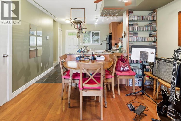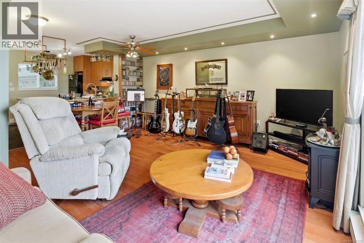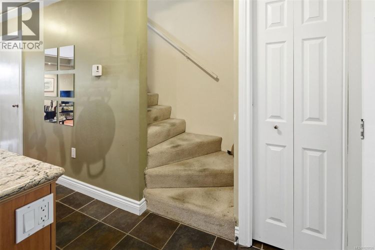 Welcome to the beautifully updated 991 Cloverdale! This unique two-level condo has been extensively refreshed inside and out, featuring a complete exterior refit including new siding, windows, decking, & roof. Inside, you’ll find a modern kitchen with striking Floform countertops, custom cabinetry, a stylish wine glass rack, and thoughtfully selected lighting. Engineered hw flooring flows throughout the main living space, leading to an open-concept living and dining area that opens onto a west-facing deck—perfect for enjoying peaceful park views, mature trees, and glimpses of the Sooke Hills. Upstairs offers two generously sized bedrooms with excellent closet space, along with a well-appointed bathroom that includes in-suite laundry. Located in a central neighborhood, you’ll appreciate having groceries, transit, & amenities just a block away. The home also includes parking. This move-in-ready home combines style, comfort, and convenience—an opportunity you won’t want to miss! Please call Kieren Rasura on 250-208-9188 for further details. (id:26452)