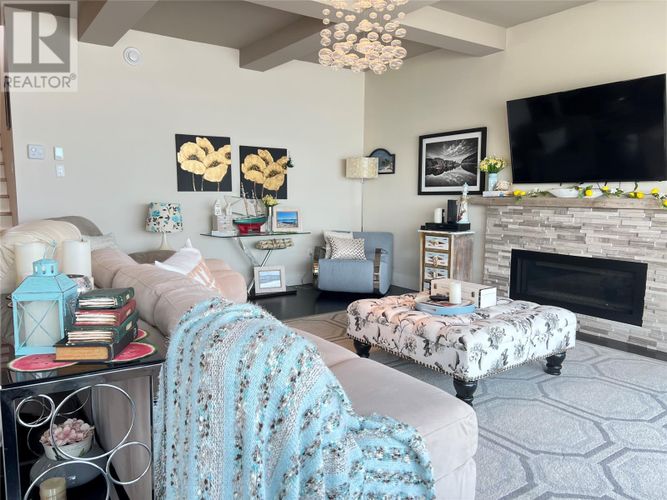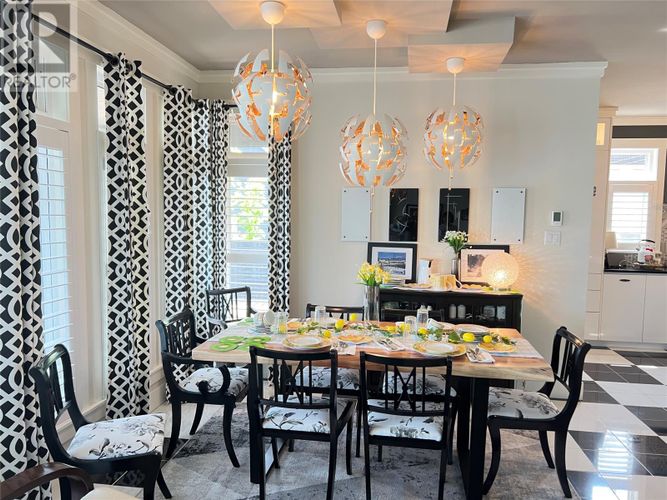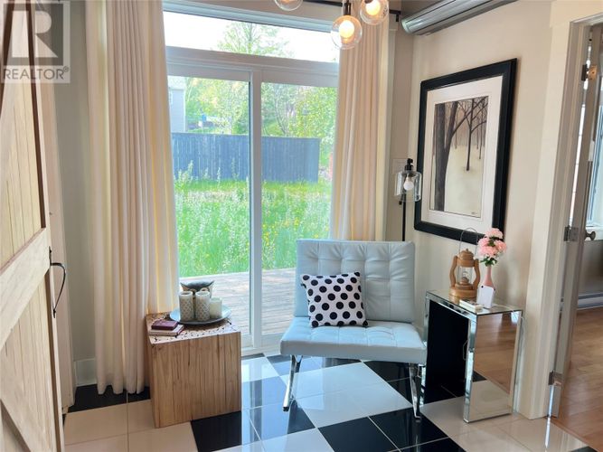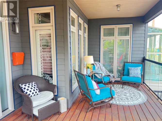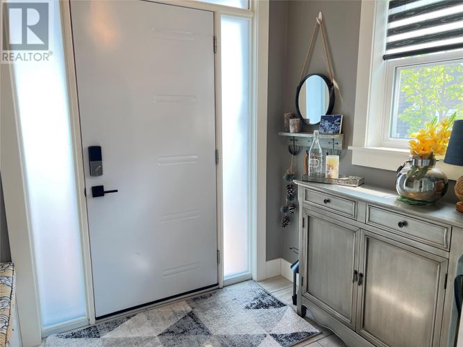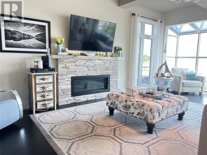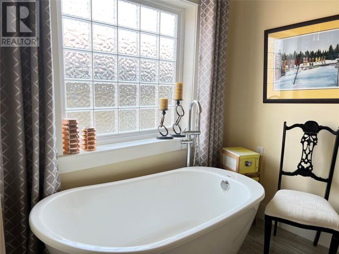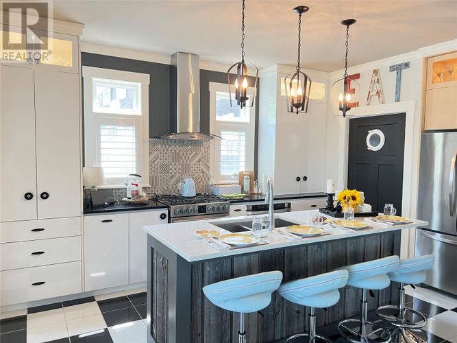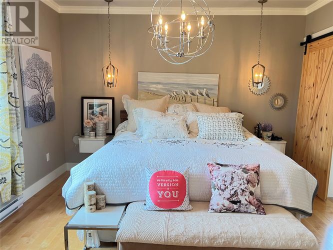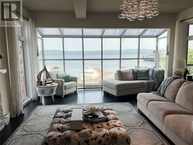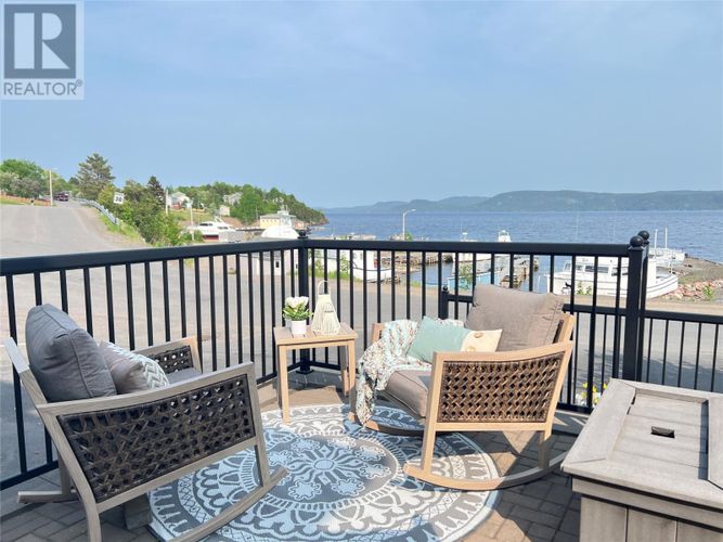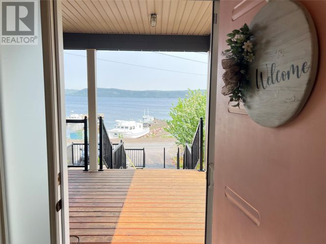 If you desire the Hampton's, NY style oasis in Springdale, NL you found it! From the moment you pull into the large paved driveway leading to multi level patios overlooking the pristine waters of Halls Bay you will feel at home with the calming sound of the water. As you enter this executive style home you will be greeted with an open concept space bright with natural light. The main floor features a spacious living room with propane fireplace, leather cork flooring and floor to ceiling windows with expansive views, dining area, a chef's dream of a kitchen equipped with propane range, large island, walk in pantry and crisp white custom cabinets. Also on the main floor is a powder room, primary bedroom with walk in closet and 3 piece ensuite. As you ascend the hardwood staircase you are met with an elegant seating area with sliding doors leading to the upper deck offering endless views including your own wharf. Two bedrooms, full bath and laundry room complete the upper level of this stunning home. Heating options include a mini-split, electric and propane. Basement is unfinished offering a ground level attached garage. Lot is beautifully landscaped with multiple shrubs and trees, stone walkways and retaining wall. Sale to include fridge, propane range, dishwasher, washer, dryer, custom blinds and a wharf located directly across the street. The Let this beautiful home wrap you in luxury and peaceful leisure. (id:26452)