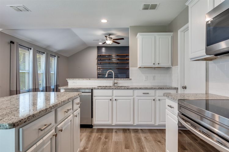 Come see this beautifully updated single-story home with 3 bedrooms and 2 full baths. The living area feels open and bright, with new luxury vinyl plank flooring and fresh paint. Bedrooms have newer carpet for extra comfort. The kitchen has stainless steel appliances—refrigerator, stove, dishwasher, and microwave—plus granite countertops. You’ll also find special touches like wiring for a surround sound system, new energy-efficient windows, and custom closet lighting, which are rare in most homes. New light fixtures have been added throughout. Step outside to enjoy a spacious, private yard. Book your tour today!