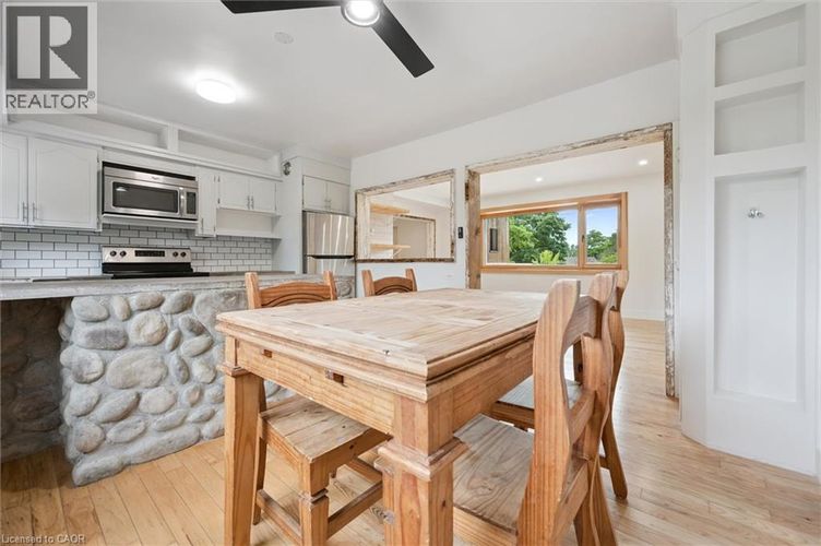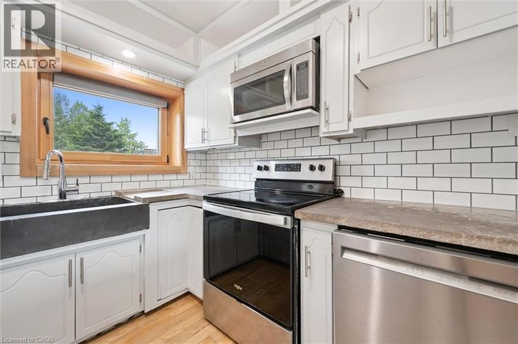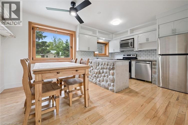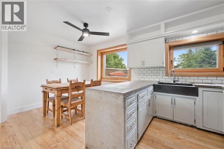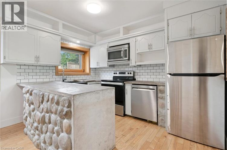 Beautiful Bungalow-Style Rental in New Hamburg – All Utilities Included. This bright and spacious bungalow offers comfortable family living in a desirable New Hamburg location close to the river, parks, trails, and local amenities. The main floor features two well-sized bedrooms, two bathrooms, gorgeous hardwood flooring throughout, and triple-paned windows that create a quiet, energy-efficient living environment. The kitchen showcases a cool rustic aesthetic with concrete countertops and plenty of character, adding warmth and charm to the heart of the home. A furnished home office sits just off the main living area and features a stunning brick accent wall. With views overlooking the backyard, it provides an ideal work-from-home setup with style and natural light. The fully finished basement offers excellent flexibility a full bathroom, and an additional room that can be used as either a bedroom or storage—perfect for guests, extended family, or a dedicated workspace. All utilities, including hydro, electricity, water, and internet, are included in the rent, and two driveway parking spaces are available. Quarterly furnace and filter maintenance is completed by the landlord, and all landscaping and lawn care are fully handled. The shared yard includes a vegetable garden, a chicken coop available for tenant use if desired, and plenty of outdoor space to enjoy. Triple-paned windows and solid construction provide excellent sound insulation throughout the home. This rental is ideal for families seeking a quiet, well-cared-for property with character, flexible living space, and a welcoming sense of community. (id:26452)