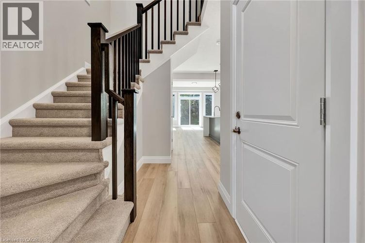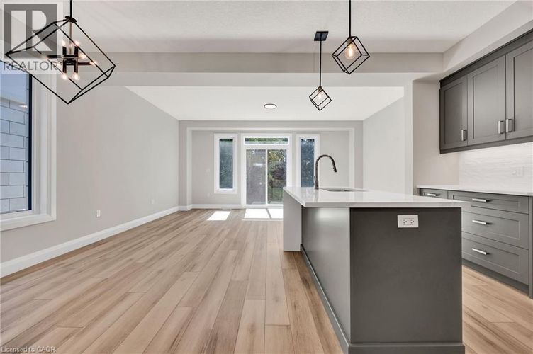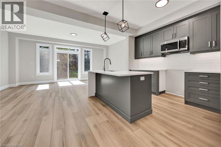 Now available for immediate occupancy, 143 Elgin Street North is a brand new luxury END UNIT Vineyard Townhome that blends comfort, style, and convenience. Backing onto mature treed greenspace, this home offers rare backyard privacy and peaceful green views. The exterior showcases classic design with stone and brick accents, black-framed windows, and clean architectural lines that give it a polished, timeless look. Inside, the open-concept main floor features 9-foot ceilings, wide-plank flooring, and a kitchen that’s as functional as it is stylish—complete with a waterfall island, quartz countertops, under-cabinet lighting, and a modern tile backsplash. Throughout the home, you'll find thoughtful upgrades that elevate the space, from upgraded lighting to quality finishes and well-planned storage. The living and dining areas connect effortlessly with the kitchen, creating a bright and practical layout for both everyday living and entertaining. Upstairs, the primary suite includes a private ensuite with a glass rainhead shower, and and additional 2 bedrooms and family bath. Right at your doorstep, you'll find Soper Park, offering green space for relaxation, playgrounds for families, and direct access to outdoor enjoyment. For your shopping needs, a variety of grocery stores are within easy reach. Dining out is a breeze with local favourites nearby. Families will appreciate the proximity to several schools, and public transit is just steps away at stops like Alison & Elgin. Plus, Highway 401 is under 10 minutes by car, making commuting simple. This is your chance to enjoy modern design, rare greenspace views, and everyday convenience—all in a brand new home. REALTOR®: (id:26452)