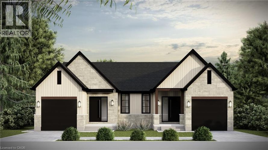 To be built- Discover the perfect blend of comfort and style in this brand-new semi-detached bungalow in the heart of Mitchell. This beautifully crafted 1,357 sq. ft. home by Alpine Homes showcases timeless stone and board-and-batten exterior detailing, complemented by an extended double-car asphalt driveway. A green alley separates the semis, offering enhanced privacy. Inside, the thoughtfully designed layout features 3 beds and 2 baths, ideal for comfortable everyday living and entertaining. The professionally designed kitchen includes quartz countertops, under-cabinet lighting, an expansive 10 ft island, and a walk-in pantry for added storage. The open-concept main living area is highlighted by soaring 10½ ft tray ceilings, elegant 8 ft doors, oversized windows, and engineered hardwood flooring throughout. Oversized 8x8 Sliding door seamlessly connect the interior to a covered porch overlooking the backyard. The spacious primary bedroom offers a walk-in closet and a spa-inspired 4-piece ensuite. Convenient laundry and a 4-piece main bath complete the level. The unfinished basement provides endless future potential with 9 ft ceilings, oversized windows, and a 3-piece rough-in, making it ideal for a rec room and up to two additional bedrooms. Meticulously designed with high-end finishes and attention to detail, this home offers modern bungalow living in a welcoming community. A rare opportunity to own a brand-new, thoughtfully designed home in Mitchell. (id:26452)