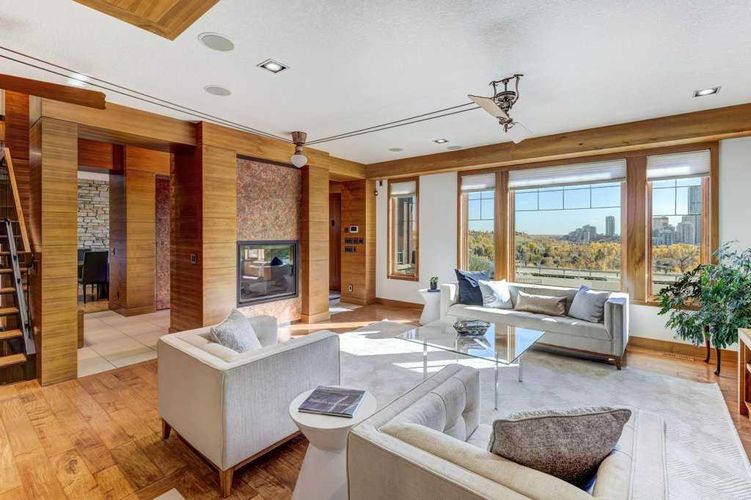 Experience timeless elegance and modern comfort in this one-of-a-kind home on the prestigious Crescent Road. Designed to impress, this custom-built residence offers exceptional views of Calgary’s downtown skyline and the river valley. Inside, an open-concept floorplan showcases premium craftsmanship and thoughtful design throughout. A Chef inspired kitchen with premium appliances including a gas cooktop, double wall ovens and warming drawers, ample counter space and a built-in coffee station. Open to living room and steps to formal dining room, both with stunning skyline views. Private media room next to spacious office and library complete the main floor. Gracious primary bedroom with vaulted ceilings, fireplace, views of downtown and the river valley, huge walkthrough closet and ensuite with double vanities, soaker tub and walkthrough shower with steam. Two additional bedrooms, each with their own walk-in closets, share a smartly finished bathroom with double vanity and steam shower. A large den with built-in desk and shelving featuring a gas fireplace and stunning views through the south facing windows complete the upper floor. The lower level is a dream for car enthusiasts and entertainers alike, featuring a showroom-style garage which could be converted to a home gym, a rec room, a games room, wet bar, full bath and wine room. The home’s exterior features classic stone and wood accents, exuding warmth and charm. Step onto the inviting front porch, perfect for enjoying morning coffee or evening sunsets. The private, treed backyard is an oasis, complete with a cozy firepit, ideal for gatherings with family and friends. This exceptional home is a rare opportunity to live in one of Calgary’s most sought-after locations. Don’t miss the chance to make it yours! (id:26452)