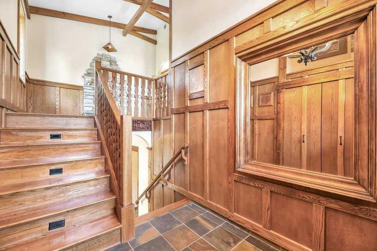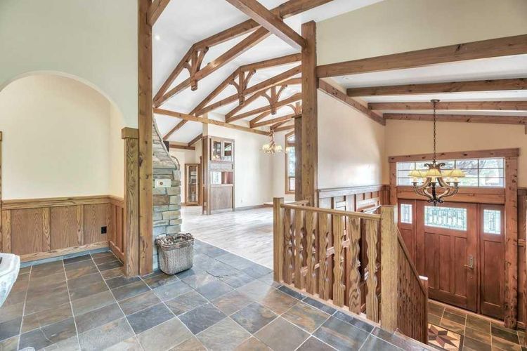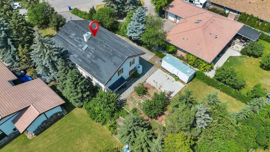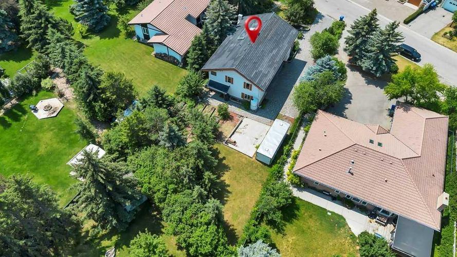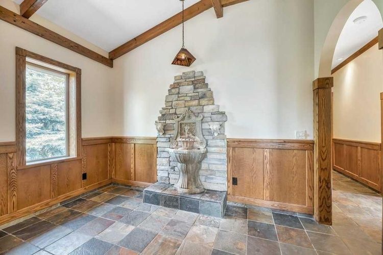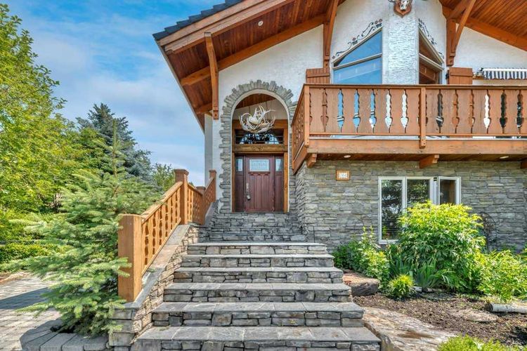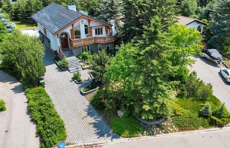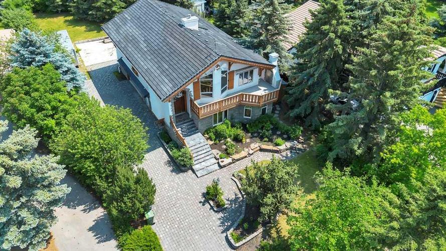 Nestled on a beautifully landscaped 1/3 acre lot adorned with mature trees, this German-inspired masterpiece offers timeless character & thoughtful design at every turn. Across the street from the lake, this one-of-a-kind home boasts stunning curb appeal with lush garden areas, complemented by abundant off-street parking & an additional poured parking pad with roughed-in in-floor heating — ready for a future garage. Inside, you're greeted by intricate custom woodwork, hand-carved detailing, slate flooring, cozy in-floor heating throughout both levels of the home & a custom front-entry fountain. The roof features tiles with a remarkable 50-year lifespan, ensuring peace of mind for years to come.As you ascend to the main level, be captivated by soaring vaulted ceilings with exposed wood beams, stained-glass accents & expansive west-facing windows that fill the space with natural light. The open-concept living & dining area centers around a charming wood-burning fireplace & beautifully crafted built-in cabinetry, blending comfort with artisan craftsmanship. Just off the dining area, a bonus room awaits — ideal as a reading nook, plant retreat, or serene home office. Step out onto the large west-facing deck to enjoy the built-in pizza oven, retractable awning & even a dumbwaiter to easily transport firewood from the ground level. The entire home has ample storage — cleverly built above the closets & on the sides of fireplaces.The kitchen is a chef’s delight, with ample prep space, a gas cooktop, built-in work station and a skylight for added light. There are 2 bedrooms on the main level feature soaring custom wood ceilings, with the primary suite offering his-and-hers closets, a cozy electric fireplace, dual window seats, and a luxurious five-piece ensuite. A convenient main floor laundry room with even more storage & a workspace as well as a stylish three-piece bathroom complete the main level.Downstairs, the lower level offers incredible flexibility, including a spacious cold room, 2 separate grade-level entrances, and two more bedrooms — each with distinctive features. One bedroom includes a mini bar, another boasts a kitchenette, open beam ceilings, electric fireplace, & walk-in closet (with a window) with space for a private office. The third versatile room could easily serve as a secondary kitchen or home office, with its own entrance & sink. A 3-piece bathroom rounds out this impressive lower level.The oversized, heated garage (19'9" x 27'5") includes an integrated workshop & abundant storage options. With instant hot water, quality finishes throughout, & exceptional attention to detail, this home offers a rare combination of craftsmanship, functionality & warmth — a true lakeside gem unlike any other. (id:26452)