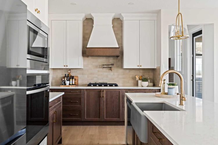 An incredible opportunity to own a brand-new estate home in the sought-after community of Cimarron Estates! Perfectly nestled in the heart of the neighbourhood, this home sits on an expansive 1/3 acre lot within walking distance to nearby amenities. Thoughtfully designed and extensively upgraded, it offers over 3,200 sq. ft. of developed living space across 3 levels, featuring 4 bedrooms, 3.5 bathrooms, 3 versatile living areas, a dedicated home office, a triple attached garage, and generous outdoor living space. The main level showcases a gourmet kitchen that overlooks the dining area and great room, highlighted by a dramatic open-to-below ceiling and a gas fireplace with a tile surround. The kitchen is equipped with an impressive appliance package, including a gas cooktop, chimney hood fan, built-in wall oven and microwave, pot filler, Silgranit apron-front sink, quartz countertops, and a full butler’s pantry/mudroom. This functional space is complete with a second fridge, sink, full upper-and-lower cabinetry, and a built-in bench with lockers—providing both style and everyday convenience. A front den (perfect for a home office) and a 2-piece powder room complete this level. Upstairs, you’ll find a spacious bonus room and a luxurious primary suite overlooking the backyard. The ensuite offers dual sinks, a freestanding soaker tub, and a walk-in shower, along with a generous walk-in closet. Two additional bedrooms, a full bathroom, and a convenient laundry room complete the upper floor. The fully developed walk-out basement is designed for entertaining, with a wet bar, two living/rec areas, a fourth bedroom, full bathroom, and a large mechanical room with additional storage. The exterior of the home is just as impressive, with Hardie board siding and an expansive main-level deck overlooking the greenspace behind the property. Designed with both elegance and functionality in mind, this home provides a true estate lifestyle inside and out. (id:26452)