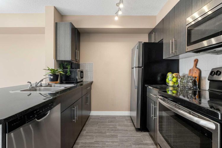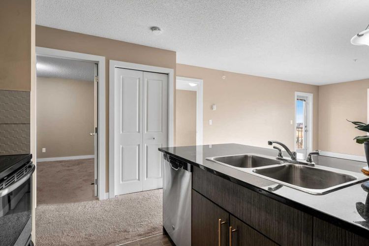 Are you looking for a smart investment or a place to call your own at an attractive price point with low condo fees? This could be the one. This fantastic condo delivers comfort, practicality, and real value with low condo fee’s. Situated on the TOP FLOOR , this MOVE-IN-READY unit offers a fabulous peaceful PARK/POND VIEW and a setting you’ll appreciate every day. This well-kept and spacious 2-bedroom, 1-bathroom condo is located in the family-friendly, amenity-filled community of Saddle Ridge. The location is hard to beat, with quick access to the Saddletown C-Train Station, the Genesis Centre, nearby restaurants, and an excellent proximity to a network of walking and biking paths. This bright top-floor unit spans nearly 700 sq. ft. and features an open-concept layout designed to make the most of the space. From the main living area, step onto the sun-filled south-facing balcony and take in relaxing views of the park and scenic pond — a great place to recharge or host guests. The kitchen flows seamlessly into the main living space and includes stone countertops, rich dark cabinetry, & generous counter space. The additional large counter makes it the perfect spot for everyday use, casual meals or hosting family and friends. The comfortable living room provides a peaceful place to relax after a long day. The dining area makes it easy to gather with family and friends for meals and special occasions. In-suite laundry adds everyday convenience and functionality. The primary bedroom offers plenty of room to unwind and includes a large closet, while the second bedroom is also nicely sized and features its own closet. A 4-piece bathroom completes the layout with stylish stone counters.Step outside to your balcony, ideal for BBQs, fresh air, and quiet moments outdoors. Other notable features include IMMEDIATE POSSESSION AVAILABILITY, low condo fees, and a conveniently located parking stall close to the main entrance. The elevator is also conveniently located close to your unit for easy access in and out.This home offers excellent value for first-time buyers, professionals, downsizers, or anyone looking for a reliable investment opportunity. Schedule your showing today and come see everything this property has waiting for you! (id:26452)