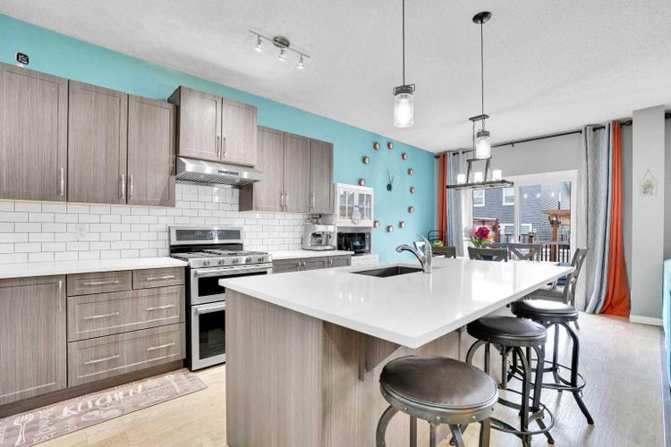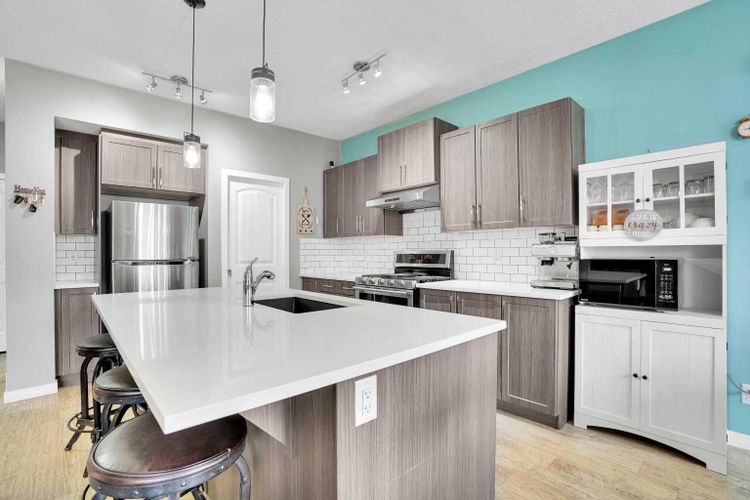 AMAZING OPPORTUNITY! to own a truly remarkable 4 BED 3.5 BATH with over 2260 SQFT of developed living space property in one of the Airdrie’s most sought-after communities—‘Kings Heights’. Thoughtfully customized from top to bottom, inside and out, this beautifully modernized two-storey home with a double attached garage stands out with its unique features and exceptional planning. Step inside '100 Kingsbury Close', through the charming covered veranda and into a spacious front entry with a coat closet. Continue past the stylish half bath to the stunning open-concept main floor, showcasing a fresh colour palette, upgraded lighting, LVP flooring for all floors and 9’ ceilings. The chef’s kitchen is a showstopper, featuring: Granite under-mount farmhouse sink, Gas stove with oven, Heavy duty newly installed hood fan, Bosch dishwasher, Large island with eating bar, Abundance of soft-close cabinetry, Quartz countertops and Walk-in pantry with pocket door and motion-sensor lighting! The expansive living room is brightened by large windows and accented with a rustic feature wall and shelves, fireplace, while the generous dining area provides access to the west-facing backyard retreat. Perfect for entertaining, this outdoor space includes a two-tier deck, Pergola, built-in Bench seating, Fire Pit, plenty of green space, fully fenced and gated for excellent privacy!! Upstairs, you’ll find a bright and inviting primary suite featuring stunning feature walls, a walk-in closet, and a luxurious 5-piece ensuite complete with dual sinks, a soaker tub and tiled shower. The upper level also offers other three additional spacious bedrooms, a 4-piece main bath, and a perfectly sized laundry room equipped with a pedestal sidekick washer. FINISHED BASEMENT—a beautifully designed space loaded with upgrades! Enjoy a gorgeous wet bar with two beverage coolers, raised eating bar, ample cabinetry, and live-edge shelving. The basement also includes a generous living area with built-in SPE AKERS, a stunning 3-piece bathroom with an oversized tiled walk-in shower, HEATED FLOOR, and excellent storage options. This home continues to impress with approximately $25,000 in premium upgrades, including: Professionally installed heater in double attached garage with abundant shelving, Heavy duty hood fan in the kitchen, Central A/C, Heated floor in the basement washroom, LVP flooring all around (except basement stairs), Two outdoor storage sheds, Two-tier deck with pergola and a seating bench and Watts Exterior Bluetooth lightings. Bothered from on-road traffic noise? Welcome! This property is located in a quiet close (CL)—no through traffic—this home is perfectly positioned for families. It is just steps away from schools such as Heloise Lorimer (Eng)/École des Hautes-Plains, skating rink, parks, walking trails to pond and three football fields. If you’re looking for a home full of character, thoughtful upgrades, and unique features, this one is truly a must-see! (id:26452)
