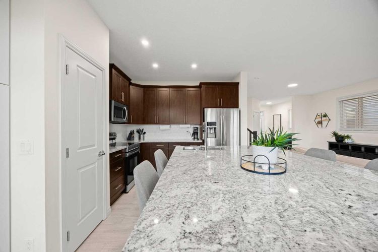 It’s not often a single home checks this many boxes — fully finished WALK-OUT basement, A/C, turf backyard, double attached garage with 220V power, ANDDD a heated single detached garage (15W x 21L x 12H) with alley access. Perfect for extra storage, a man cave, workshop, or she-shed. Step inside and you’re immediately greeted by an abundance of natural light flooding the main floor. The kitchen features two-tone cabinetry, a pantry, stainless steel appliances, and a massive island with built-in seating and countertop power, plus direct access to the rear deck. The open-concept layout flows seamlessly into the living room, anchored by a cozy gas fireplace — ideal for everyday living and entertaining. Upstairs is where this home really shines. The spacious primary bedroom offers a functional ensuite with double vanity, soaker tub, and glass shower. The walk-in closet connects directly to the laundry room for next-level convenience. A bonus room separates the primary from the two additional bedrooms and full bathroom, creating a layout that just makes sense. The fully finished walk-out basement adds even more living space with a third full bathroom, large family room with wet bar, generous storage, and direct access to the backyard — complete with turf, dog run, and the detached heated garage. Located right across from park/green space, and minutes to amenities like Costco, Home Depot and Save On Foods - this one is hard to beat! (id:26452)