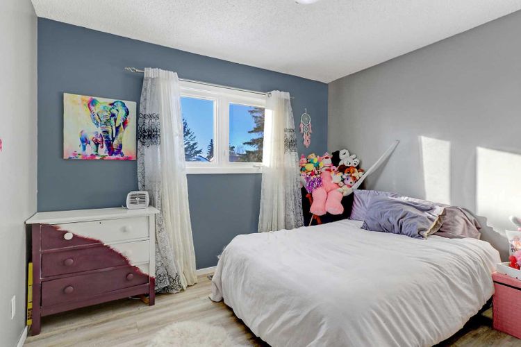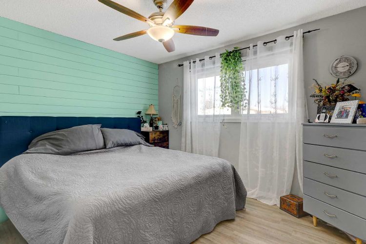 Welcoming and refreshed home offers instant curb appeal and a layout that feels both comfortable and functional. Step inside to a sun-filled living room, where a large front window creates a bright and inviting space to relax or gather. The kitchen is conveniently located just off the living area and features plenty of light grey cabinetry, generous storage, and a window overlooking the backyard—ideal for day-to-day living.The main level includes a spacious primary bedroom with a charming shiplap feature wall, a second well-lit bedroom, and a four-piece bathroom finished with a tiled tub and shower surround.Downstairs, the fully developed basement adds excellent versatility, offering a large family or recreation room perfect for kids, gaming, or movie nights. A sizeable bedroom with chair rail detailing and two closets is paired with an updated three-piece bathroom. A den finished with classic wainscoting, along with a laundry room and additional storage space, completes the lower level.Outside, the fully fenced yard is a fantastic feature for families and pets. Enjoy the brick patio—ideal for summer lounging or outdoor meals—along with raised garden boxes, a storage shed, and plenty of open space to play. There is also room to build a garage for added value and convenience.Notable updates and features include most upper-level windows (excluding the living room picture window), a roof replaced in 2018, mail delivery right to the front door, and an unbeatable location just one block from the Crystal Park trail system. This is a great family home or investment opportunity in a desirable area. Book your showing with your REALTOR® today. (id:26452)