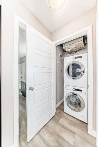 Welcome to your dream home! This immaculate Two Bedroom, Two Bathroom Stacked Upper Unit Townhome offers a perfect blend of comfort and convenience, situated just steps from the beautiful Chinook Winds Park. Enjoy easy access to roadways and nature right outside your door. Step inside to discover a thoughtfully designed interior featuring a spacious living room with a striking pitched ceiling that enhances the sense of space and light. As an end unit with an abundance of windows, the home floods with natural light, creating a warm and inviting atmosphere. The open layout offers plenty of options for furniture placement, allowing you to create the perfect arrangement for your lifestyle.The expansive kitchen features espresso coloured cabinetry and elegant Granite countertops. Sleek black appliances and a central island with seating make this the perfect spot for casual dining or entertaining, while a large walk-in pantry provides ample storage for all your kitchen essentials. The kitchen flows into a sunny dining nook with access to the west-facing balcony, the perfect place to enjoy morning coffee, evening cocktails, or barbecuing with friends.The large primary bedroom boasts a spacious walk-in closet and a luxurious 3-piece ensuite with a shower, providing a private retreat for relaxation. The sunny second bedroom, with windows on two walls, is ideal for a guest room or an inspiring home office. A convenient laundry closet with a washer and dryer is located in the hallway. This home also features in-floor heating, ensuring comfort during the colder months.With TWO easily accessible PARKING STALLS (one Titled and one Assigned), plus easy access to visitor and street parking nearby, convenience is at your fingertips. Location is key, and this townhouse doesn’t disappoint! It is ideally situated close to pathways, parks, ponds, schools, shopping, and amenities, making daily life a breeze.This home is clean and move-in ready. Condo fees include HEAT, WATER, SEWER, an d TRASH. Don’t miss out on this opportunity to own a beautiful home in a fantastic location! This is the Airdrie home you have been waiting for. Pets are allowed with board approval. (id:26452)