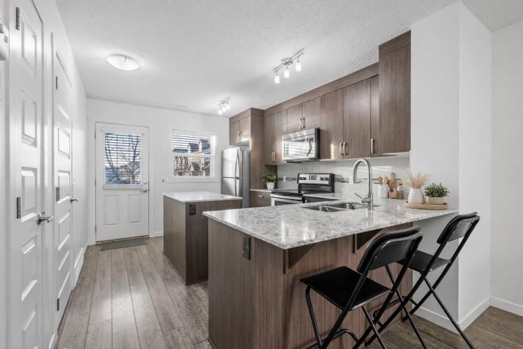 This beautifully maintained pet-friendly Auburn Bay townhouse offers the perfect balance of comfort, functionality, and location in one of Calgary’s most desirable lake communities. With low condo fees and over 1,200 sq ft of thoughtfully designed updated living space, the home is completely move in ready, featuring newer carpet, fresh paint throughout, and a brand new dishwasher for added convenience. The main floor showcases a bright, open concept layout ideal for everyday living and entertaining. The kitchen is both stylish and practical, offering ample cabinetry, a central island, pantry storage, and a seamless flow into the living and dining areas. Upstairs, you’ll find two very spacious bedrooms, each with its own private ensuite, providing excellent privacy for owners, guests, or roommates. An added bonus is the easily accessible attic, offering nearly 200 sq ft of additional storage for larger or seasonal items. Step outside to your private, large fenced green yard, a rare and inviting feature for a townhouse, perfect for relaxing, entertaining, or enjoying warm summer days. Your surface parking stall is right outside of your fenced backyard. Location truly sets this home apart. Just minutes from the Auburn Bay Lake, South Health Campus Hospital, and the vibrant Mahogany and Seton amenities, including shopping, restaurants, and entertainment, everything you need is close at hand. Enjoy unbeatable convenience with quick access to the Seton Library and the Seton YMCA, one of the largest and most impressive YMCAs in North America. Quick access to Deerfoot and Stoney Trail makes commuting simple and efficient. Ideal for first time buyers, young professionals, or downsizers seeking a low maintenance lifestyle, this home delivers exceptional value in a prime location. Don’t miss your chance to enjoy everything Auburn Bay has to offer. Pets are allowed if they are typical household pets normally permitted in urban homes. Livestock, fowl, snakes, rodents, reptiles , arachnids, and exotic pets are not allowed. Dogs and cats must be approved by the Board and kept on a leash when outside the unit. Board approval is required for more than two pets in the unit. Families in Auburn Bay have access to nearby public schools including Bayside School (K–5), Lakeshore School (Grades 6–9), and Joane Cardinal-Schubert High School (Grades 10–12). Book a showing today and view the 3D Virtual iGuide Tour! (id:26452)