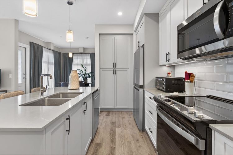 Lovely corner unit in the highly desirable community of Scarboro, just steps from trendy 17th Ave with its cafés, restaurants, local shops, bike paths & parks. Enjoy being close to the energy of the district while still tucked away in a remarkably quiet setting. Ideal for professionals or downsizers seeking a low-maintenance, design-forward home in a prestigious inner-city neighbourhood.A short drive (or walk) to downtown & quick access to 14 Str, Crowchild, Bow & Sarcee Trails, all connecting easily to Stoney Trail making traveling anywhere in the city, or out to the mountains simple & efficient.This bright, modern unit offering 2 spacious bedrooms & 2 full bathrooms, this thoughtfully designed layout places the bedrooms on opposite sides of the unit for maximum privacy. Features 9-foot ceilings, air conditioning & large windows that flood the home with natural light. The oversized balcony is perfect for morning coffee or evening BBQs.You will appreciate the welcoming front entry with space to sit and remove your shoes, rather than stepping directly into the living/kitchen area like so many apartments. Kitchen features: stainless appliances, quartz, beautiful cabinetry & a large island. Throughout the home you will find luxury vinyl plank flooring, modern finishes & a clean, contemporary feel.The primary bedroom includes a spa-inspired ensuite with double vanities & a large subway-tiled shower. The second bedroom is located on the opposite side of the unit with a full 4-piece bathroom, making it ideal for guests, roommates, or a home office. Additional features include: air conditioning, in-floor heat, titled underground parking, titled storage locker & bike storage plus the complex is PET FRIENDLY!This beautifully maintained & well-managed complex is just a short walk to endless amenities & only 10 mins to the LRT & bus stop right outside. Surrounded by some of Calgary’s most charming historic homes, tree-lined streets & close to the river valley, th is is urban living with character, charm & convenience.Notably, Scarboro 17 is the only multi-family building ever constructed in Scarboro, making this a rare & truly unique ownership opportunity in one of Calgary’s most prestigious & established neighbourhoods. A great place to live & a smart long-term investment. (id:26452)