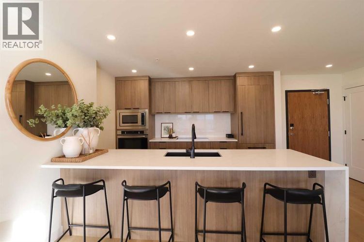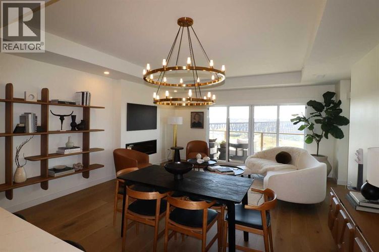 A rare opportunity to own The Breuer floor plan complete with exceptional views and extensive updates has now become available. This highly coveted corner unit is complimented by one of the nicest River Valley vantage points available from the 102 Scenic Drive complex. The wrap-around balcony offers 369 sq ft of outdoor living space and offers 3 sliding patio door access points. Combining this with large windows and an open floor plan, your views can be enjoyed from inside and out. The design of this 2-bedroom, 2-bathroom unit offers an abundance of functionality and comfort. The seamless connection of the kitchen, dining space and living room make hosting guests a breeze as well. Additional interior features include elevated ceilings, quartz counter tops, Fulgor Milano built-in appliances including a convenient induction cooktop stove, convection oven, refrigerator with water and ice features, and a microwave oven. Notable upgrades include a 50” electric fireplace, lighting and plumbing fixtures, quartz countertops, Onyx kitchen sink, walk-in coffee station/pantry and laundry room cabinets, computer station worktop and drawers, custom closet organizer systems throughout, as well as motorized blinds in the bedrooms and living room. Secured underground parking provides you with 2 parking stalls and a storage unit as well. The amenities within the building are truly exceptional and offer something for everyone. Courtyard and interior lounge areas, fully equipped conference room, sunroom/garden area, workshop, car club lounge and showroom, car wash bay, and a large courtyard with covered fireplace/conversation area. Pets are allowed but please verify certain restrictions. For added convenience, condominium fees include electricity, heat, water, sewer, garbage collection, and Professional management. (id:26452)