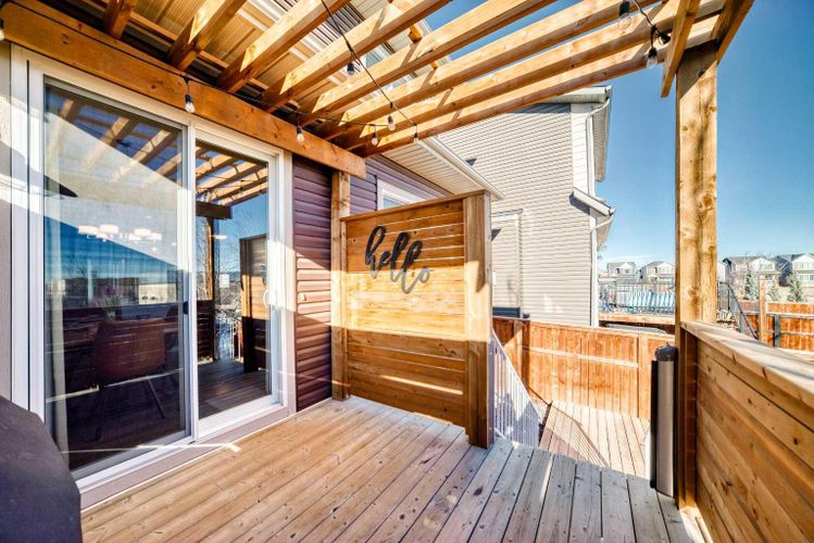 Welcome to this beautifully maintained and extensively upgraded Calbridge-built two-storey in the heart of Fireside — offering direct access to both the public and Catholic K–8 schools right behind the home.For families, this location is exceptional. WATCH OR WALK your children to school in SECONDS and enjoy the convenience of playgrounds, a ball diamond, outdoor rink, skate park, future dog park and scenic forest trails all just steps away. It’s a lifestyle designed around growing families and everyday ease.Over 2200 SF of professionally developed living space! The main floor features 9’ ceilings, a stunning 8’ rear window and 8’ patio door that flood the space with natural light, and upgraded kitchen cabinetry extended to the ceiling. The kitchen is beautifully appointed with brand new refrigerator and stove (2025), newer dishwasher, and modern finishes throughout. Hunter Douglas blinds are installed in all windows, and new CENTRAL A/C (2025) ensures year-round comfort.Upstairs, you’ll find three generous bedrooms and a large, cozy bonus room highlighted by a stunning feature wall — the perfect family gathering space. The primary retreat offers a spacious walk-in closet and an impressive 5-piece ensuite designed for comfort and relaxation. Convenient upper-floor laundry with a newer washing machine adds everyday practicality.The professionally finished basement, completed by Calbridge, includes large sunshine windows that create a bright and welcoming lower level, complete with an additional bedroom, full bathroom and spacious recreation area — ideal for guests or teens.Step outside to a thoughtfully designed backyard with two decks, a privacy pergola (2023), and strategically planted trees for added privacy while still enjoying the open space behind. The widened driveway and dedicated bin pad (2025), along with new low-maintenance front landscaping (2025), enhance both function and curb appeal.Located just 5 minutes to shopping, restaurants, daily e ssentials & Highway 22 for Calgary or mountain access, and only 10 minutes to downtown Cochrane, this home blends quality construction, thoughtful upgrades and unbeatable family convenience.Meticulously cared for and truly move-in ready. (id:26452)