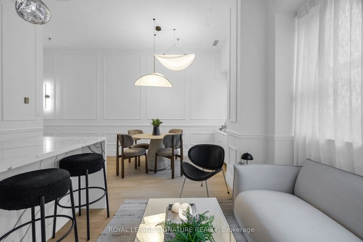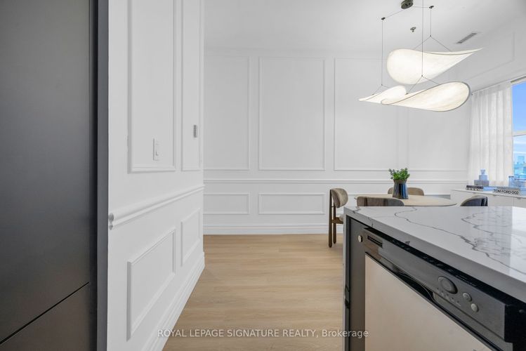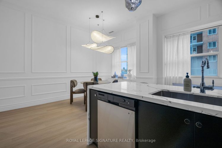 Welcome to the heart of King West. This fully renovated 2-bedroom residence brings boutique loft living to life with its soaring 10 Ft ceilings, oversized windows, and a bright, open-concept layout that feels instantly inviting. The custom chef's kitchen is a true showpiece - featuring brand new appliances including a panelled range hood and built-in fridge, a new stove, and quartz counters carried seamlessly up the backsplash for a refined, contemporary finish. The waterfall island creates a stunning focal point with added seating and prep space, while the clever pocket-door cabinet keeps everyday items tucked out of sight for a clean, minimalist look. Open shelving makes this kitchen both functional makes the space feel even more spacious. Wainscotting and designer lighting continue throughout the home, adding character and a modern, elevated feel. The primary bedroom offers double closets and a 4-piece ensuite, while the second bedroom includes a generous double closet of its own. Large locker conveniently located on the same floor. Enjoy hotel-style amenities including a rooftop terrace with BBQ lounge areas, gym, party room, games room, 24-hour concierge, bike storage, and visitor parking.An unbeatable location - steps to King & Queen West's best dining, cafes, shops, Trinity Bellwoods Park, the waterfront, transit, and quick access to the Gardiner. Walk Score 98 - everything is right here. (id:26452)