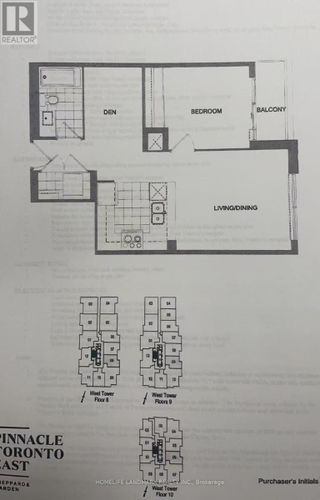 Brand new luxury living at Pinnacle Toronto East! This bright and stylish 1 Bedroom + Den suite offers a highly functional layout with 9-ft ceilings and a spacious open-concept living/dining area. 598+32=630 sqf in total. Enjoy a modern kitchen featuring quartz countertops, premium cabinetry, and full-size stainless steel appliances. The versatile Den is perfect for a home office/2nd Bedroom. The primary bedroom includes a large closet and walk-out access to a private outdoor space. Convenient ensuite laundry, one parking, one locker, and high-speed internet included. Situated in a highly desirable Scarborough community at Sheppard & Warden. Steps to TTC bus routes and minutes to Don Mills Subway Station, Agincourt GO, Hwys 401/404/DVP, top schools, parks, and major shopping hubs including Fairview Mall and Scarborough Town Centre. Walk to everyday conveniences: supermarkets, cafés, and great dining options. Ideal for professionals or small families seeking modern comfort with unbeatable convenience. (id:26452)
