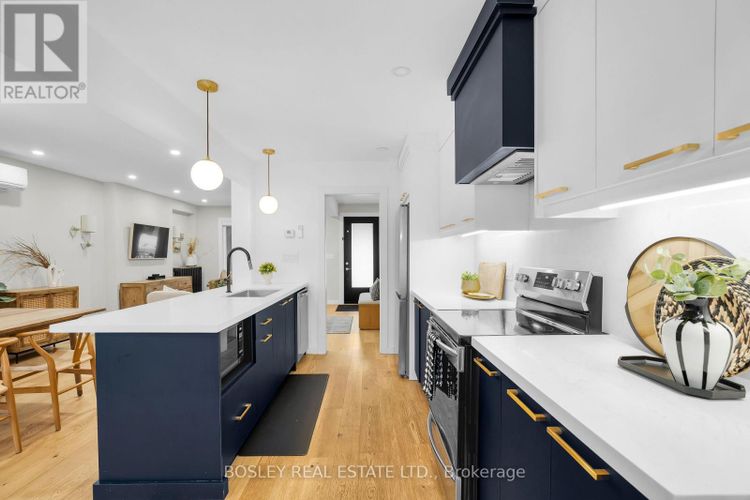 * Offers Anytime * Nestled in family-friendly Danforth Village, this fully renovated 3+1 bedroom, 3 bathroom semi-detached home blends modern style with functional family living. The sun-drenched open-concept main floor features stainless-steel appliances, a center island with combined dining area, and a seamless flow for entertaining. Upstairs, generous bedrooms include a primary suite with 3-piece ensuite and convenient second-floor laundry. The lower level offers a separate entrance, a bedroom, four-piece bathroom, ample storage, and versatile living space. Step outside to a sun-drenched, professionally landscaped south-facing backyard, large enough for kids to play and complete with a big shed, perfect for family fun and entertaining. Just steps from the Danforth, a short walk to the subway, and with quick access to the DVP. **** PARKING - neighbour agreement to park in drive every other month (id:26452)