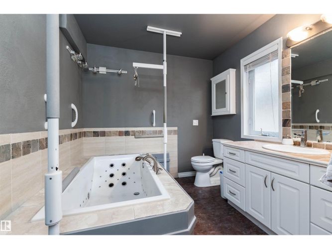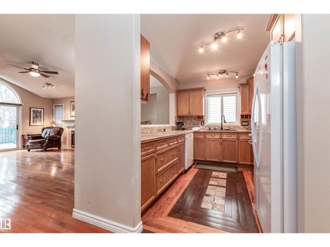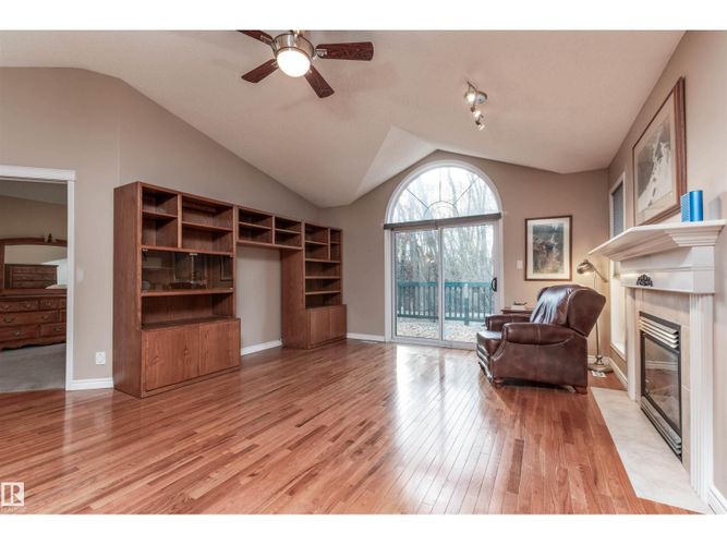 BACKS ONTO PARK! INCREDIBLE TREED SETTING! This lovely bungalow offers a prime location, functionality and value! Welcome to Eldorado Drive in St. Albert! Featuring an open concept with 1309 square feet plus an almost fully finished basement (unfinished storage space). Generous entry way, beautiful kitchen with dining area, and a spacious living room with gleaming hardwood floors and gas fireplace. The Primary Bedroom has its own private 3-piece ensuite with tub plus a walk-in closet. The second bedroom is on the main floor as well. Convenient main floor laundry & a 3 piece bathroom. The basement boasts 9 ft ceilings, vinyl plank flooring, a large family room, 3rd bedroom, flex space, 3-piece bathroom and storage space. Lovely deck with gas hook up for bbq and a private & fenced backyard with a gate. NEW SHINGLES (2024), NEW motor in the furnace (2025), and a NEW thermostat (2025). Double attached garage and great curb appeal! IMMEDIATE POSSESSION is available! Visit REALTOR® website for more information. (id:26452)