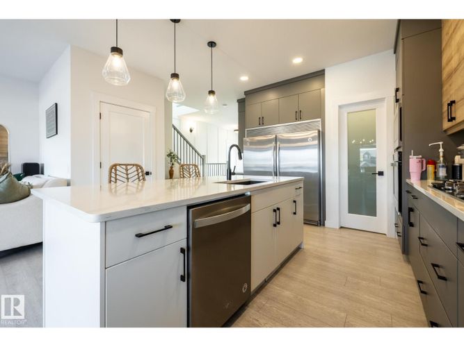 custom-built two-story home offering 2787.83 sq. ft. of total living area, situated on a bright corner lot with an open-concept main floor ideal for everyday living and entertaining. The kitchen features quartz countertops, stainless steel appliances, a gas range and a large island, flowing seamlessly into the living and dining areas. A main floor den & pantry add everyday functionality. The upper level offers three bedrooms, including a vaulted-ceiling primary suite with walk-in closet and five piece-ensuite, a second full bathroom, a spacious bonus room, and upper-floor laundry. The fully finish basement features three additional bedrooms, a four-piece bath, recreation room, second laundry area, separate side entrance, and rough-in plumbing for a future kitchen development. Additional features include central air conditioning, Hunter Douglas blinds, and a heated double attached garage with custom-built ceiling and wall storage. A well-designed, move-in-ready home in a desirable location. A Must-see home (id:26452)