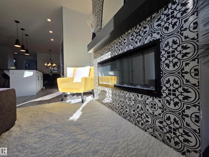 SHOW HOME! Cantiro's Metro Nixon model, this Show Home reflects intentional design, upgraded features and finishes, strong visual appeal to impress. Located in growing, family-friendly neighborhood, close to schools and amenities (playground directly across the street). Wide front verandah, south-facing backyard, completed deck, double garage, and full landscaping. Open-concept main floor, stylish kitchen with SS appliances, quartz countertops, modern backsplash, quality tile finishes, and a decorative tiled electric fireplace feature wall. Main floor den/flex room adds versatility. Upstairs includes 3 bedrooms plus a bonus room. The spacious primary suite with oversized walk-in closet and ensuite. Second-floor laundry for convenience. Central A/C. Room audio system, security system (owner to subscribe), Exterior LED lights. Separate side entrance to the unfinished basement (9’ ceiling) offers excellent future development potential. It's not just a house, its your HOME build with vision and lifestyle. (id:26452)