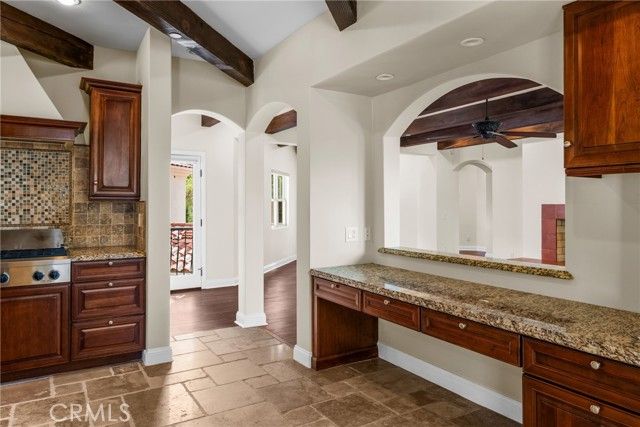Luxurious Mediterranean Estate with Modern Amenities - Discover this stunning Mediterranean resort-style estate, a perfect blend of timeless elegance, high-end finishes, and modern convenience. Nestled near Smiley Heights and Sunset Avenue, this five-bedroom, four-bathroom home (with an additional two powder/guest bathrooms and a half bathroom by the pool) offers an unparalleled living experience with exquisite architectural details and state-of-the-art features. Key Features: • Grand Courtyard & Entryway: Step through the impressive front entrance into a charming courtyard with a beautiful fountain, setting the tone for this exceptional property. • Spacious Interior: The home boasts an open-concept design with real wooden beams and large windows (with Hunter Douglas window treatments) that allow for abundant natural light. • Gourmet Kitchen & Dry Bar: The chef’s kitchen is a masterpiece and an island, complemented by a stylish dry bar—perfect for entertaining. It has travertine marble floors. • Elevator & Smart Home Technology: Enjoy effortless access to all levels with a private elevator, while the Control4 system provides seamless automation for lighting, sound, security, and climate control. • Outdoor Oasis: The expansive patio features a built-in fireplace and grill, making it ideal for al fresco dining and entertaining. The patio has multiple dwarf citrus trees on beautiful planters. The beautifully landscaped backyard has a separate fire pit area. • Sustainable Living: Equipped with fully paid solar panels, this home is both energy-efficient and environmentally friendly. This house has 2 tankless water heaters and 3 HVAC systems. • Luxurious Bedrooms & Baths: The primary suite is a sanctuary, complete with a spa-like en-suite bathroom, huge walk-in closet, and Juliet balcony. Each additional bedroom is generously sized with its own unique charm • Three-Car Garage & Central Vacuum System: A spacious three-car garage provides ample storage, while the central vacuum system adds an extra level of convenience. • Fruit Trees & Lush Landscaping: Enjoy the beauty and bounty of mature fruit trees (persimmons, apricot, peach, fig, plum, oranges, pomegranate, guava) adding a touch of nature to this luxurious retreat. Don’t miss the opportunity to make this dream home yours! Schedule a private showing today!