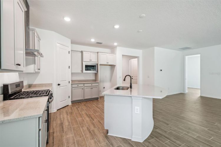 Builder/Seller incentive: Up to $20,000 of the purchase price available for buyer’s closing costs, prepaids, or rate buydown. Terms subject to preferred lender approval. This Elmwood model is a 2-bedroom, 2-bathroom home PLUS a bonus flex room. It is an open-concept floor plan. The kitchen, great for entertaining, includes a large island with a breakfast bar, 42-inch cabinets, and a large pantry. The gas cooktop and built-in oven are highlights for the aspiring chef. Ceramic tile in the main living spaces and wet areas. The spacious primary bedroom is equipped with a walk-in closet and an en suite bathroom with dual sinks and a water closet. The welcoming living area has large sliders that lead out to your covered lanai. Community amenities include a private clubhouse with a sparkling pool, fitness center, pickleball courts, bocce ball courts, horseshoe pits, a small walking path, and a meeting area with a kitchen. The clubhouse and community are surrounded by nature, with opportunities to see a variety of wildlife. All this is tucked away from the hustle and bustle but minutes from downtown Brooksville, 30 minutes to Pine Island and Weeki Wachee State Park, and 45 minutes from Tampa International Airport. Cable, internet, and landscaping maintenance are also included! Home price is based on standard features, lot, elevation, and structural options.