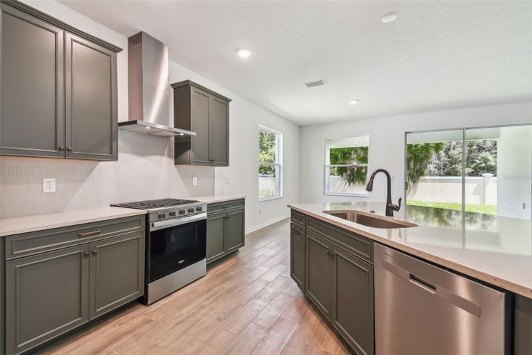 Builder/Seller incentive: Up to $20,000 of the purchase price available for buyer’s closing costs, prepaids, or rate buydown. Terms subject to preferred lender approval. This Elmwood model is a 2-bedroom, 2-bathroom home, PLUS a bonus flex room. It is an open concept floor plan. The kitchen, great for entertaining, includes a large island with breakfast bar, 42-inch cabinets, and large pantry. The gas cooktop and built in oven are highlights for the aspiring chef. Ceramic tile in the main living spaces and wet areas. The spacious primary bedroom is equipped with a walk-in closet and an en suite bathroom with dual sinks and a water closet. The welcoming living area has large sliders that lead out to your covered lanai. Community amenities include a private clubhouse with sparkling pool, fitness center, pickleball courts, bocce ball courts, horseshoe pits, small walking path and meeting area with kitchen. The clubhouse and community are surrounded by nature with opportunities to see a variety of wildlife. All this is tucked away from the hustle and bustle, but minutes from downtown Brooksville, 30 minutes to Pine Island and Weeki Wachee state park and 45 minutes from Tampa international airport. Cable, internet and landscaping maintenance are also included!
