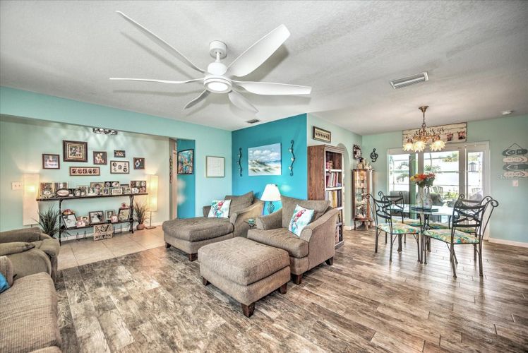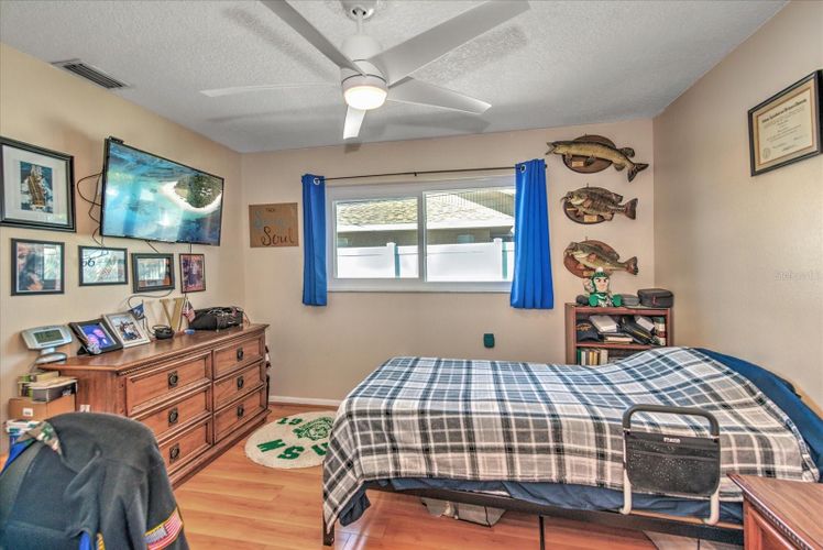 Incredible Value!! This home features two spacious living areas and a thoughtfully designed handicap-accessible bathroom making it ideal for multigenerational living. Recent updates include a top-of-the-line $56K aluminum roof, a newer AC handler with flex ductwork, and a 50-gallon water heater. This exterior shines with fresh paint, new landscaping, exterior lighting, and a brand-new 6' vinyl fence encompassing the huge backyard. The heavy-duty impact-resistant windows and sliders offer security and peace of mind, while the above-ground housed generator ensures you’re always prepared. Enjoy outdoor living with a newer pool pump, a screened-in pool cage...and multiple doggie doors for the pet enthusiast. Inside, the kitchen cabinets have been refaced and countertops updated! The bathrooms have been modernized for a fresh, stylish look. This home is truly move-in ready and built for convenience, security, and relaxation.