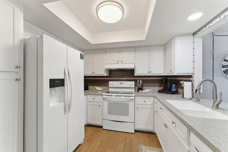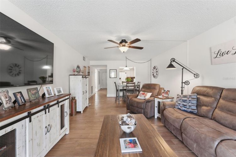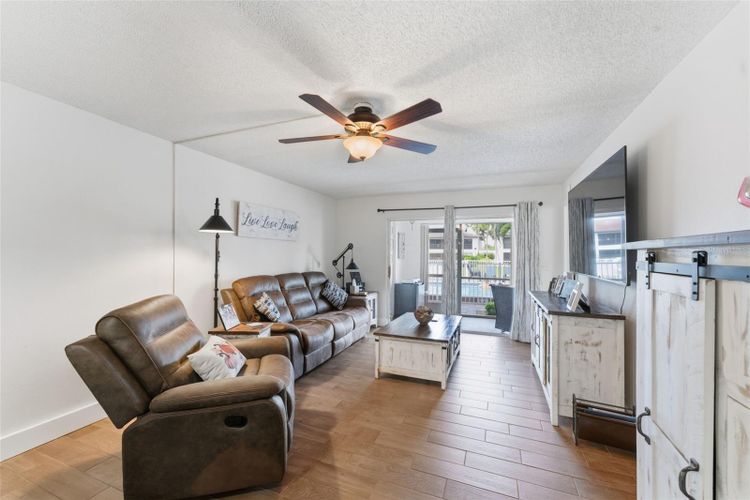 Light and bright end-unit condo in SE Cape Coral with stunning views of the pool and Gulf-access canal. This 2-bedroom, 2-bath home features wood-look tile throughout, solid surface countertops in the kitchen, and both a dining area and an eat-in space off the living room. Enjoy peace of mind with a newer A/C unit, new water heater, freshly painted exterior, full hurricane shutters enclosing the screened lanai, and a fully funded HOA with solid financials. The community offers a first-come, first-served Gulf-access dock, and condo fees include water, building insurance, and flood insurance. Washer and dryer are conveniently located in the unit—everything you need to enjoy the easy Florida lifestyle!