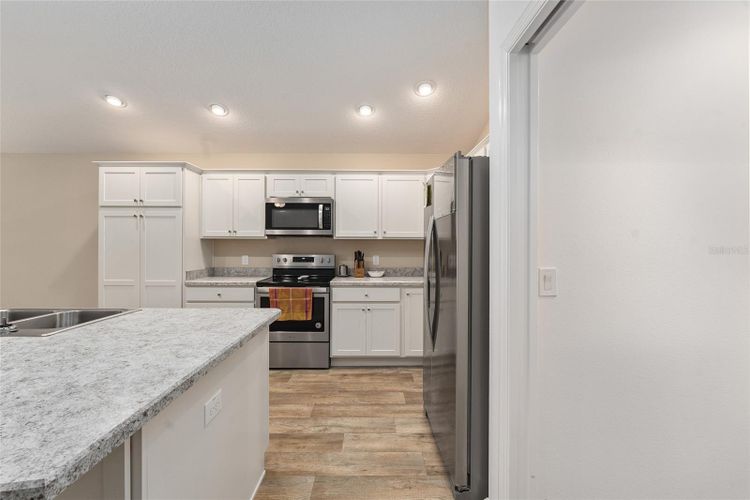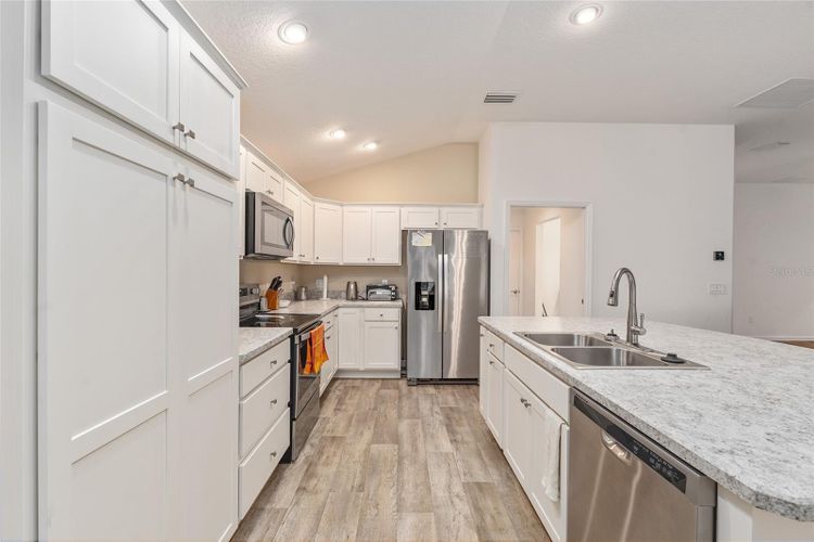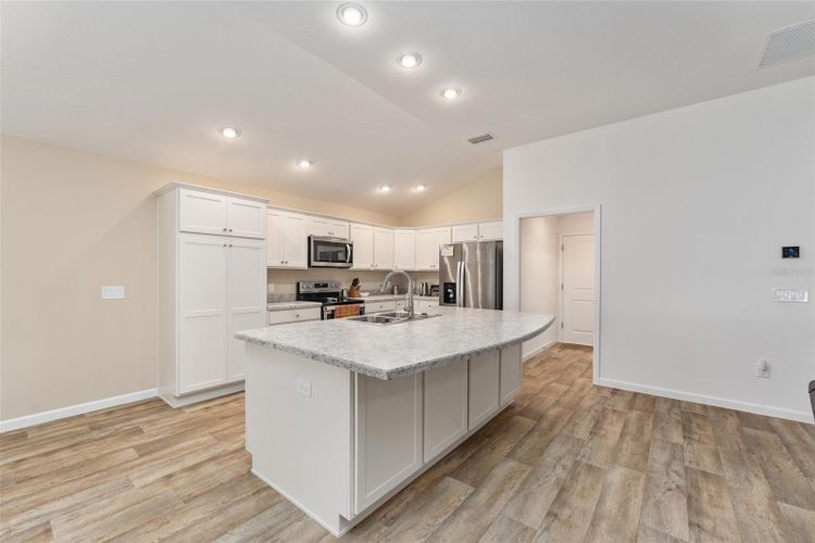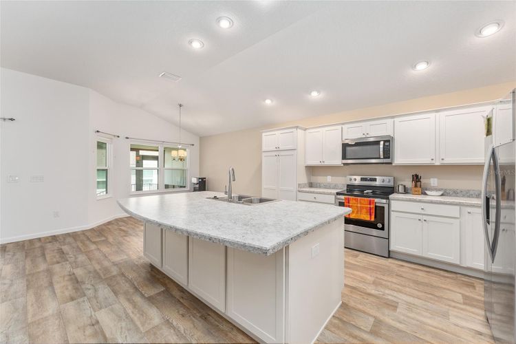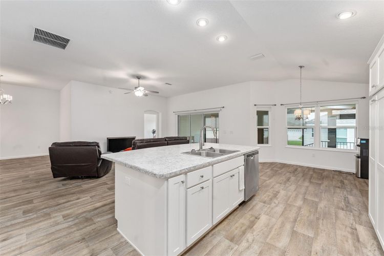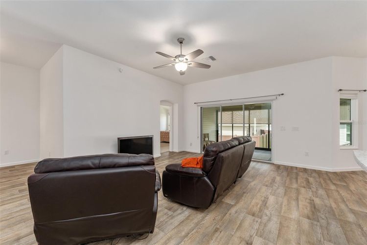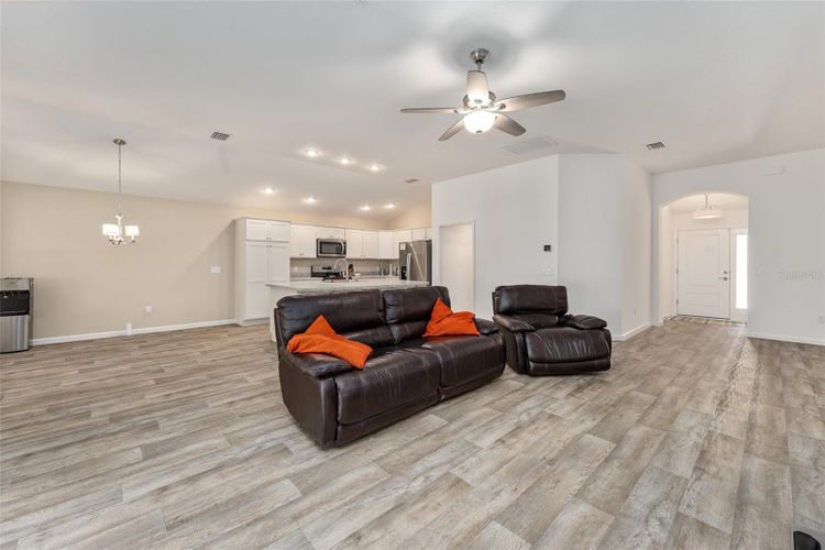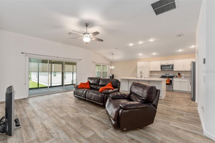 Great Location! This amazing 4 bedroom 2 bath split plan home in Oxford Oaks is was built in 2019! Vinyl plank flooring in most of the home with carpet in the bedrooms. The spacious living room is open to the kitchen and dining area. Kitchen feature an island with extra room for eating and Stainless appliances. The lovely Primary bedroom has an extra large walkin closet. The primary bath features double sinks and walkin shower. A large lanai has plenty of room for entertaining and enjoying the sunset. The laundry room has extra storage and a laundry sink. Washer and Dryer are included. The two car garage is oversized and has electric car charger. There is a community pool and tennis courts and a playground. This gated community is Convenient to The Villages for shopping, entertainment, banks, medical and business offices and schools. Come see this home today!