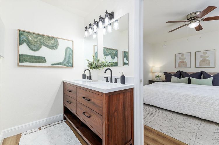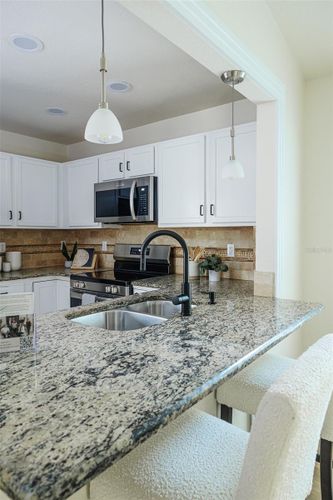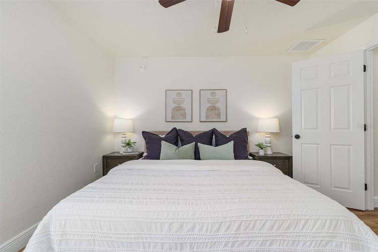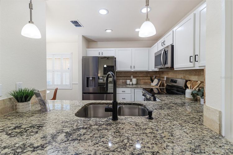 Welcome to this beautifully renovated 3 bedroom, 2 bathroom home in a peaceful neighborhood! Recent upgrades make this property move-in ready, including a roof (2017), brand new water heater (2025), fresh interior and exterior paint (2025), and new luxury vinyl plank flooring throughout. The open-concept living room, kitchen, and eat-in dining space boast soaring ceilings and an abundance of natural light. The kitchen features brand new appliances, while both bathrooms have been freshly updated with new vanities and toilets. The spacious master suite includes a walk-in closet and ensuite bath with dual sinks. Enjoy Florida living on the screened-in back porch overlooking the fully fenced backyard. A 2-car garage completes this wonderful property. Don’t miss this turnkey home with modern finishes and thoughtful updates!