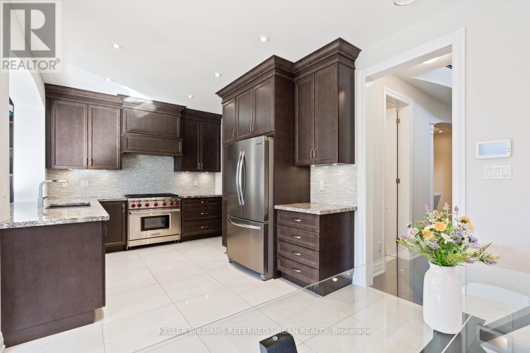 One of the largest end-unit link homes in the subdivision, situated on a premium 40 ft wide lot linked only at the garage. Offering 2,190 sq. ft. above grade plus a 1,012 sq. ft. finished basement, this home delivers nearly 3,200 sq. ft. of total living space - beautifully upgraded throughout. Features include a 36" 6-burner WOLF gas range, butler's pantry, natural gas BBQ hookup, and built-in entertainment unit. Hardwood flooring and 24" tile flow throughout the home. The finished basement includes a full kitchen, recreation/fitness area, 3-pc bathroom with glass shower, and ample storage. Upstairs, the primary suite offers high ceilings, a 5-pc ensuite, and a custom walk-in closet. Convenient second-floor laundry and a spacious 2-car garage with home and backyard access complete the layout. Located in a family-friendly neighbourhood, walking distance to shops, restaurants, and top-rated schools, and just minutes to Hwy 400, the Zancor Rec. Centre, and scenic walking trails. A must-see home offering exceptional quality, comfort, and convenience. (id:26452)