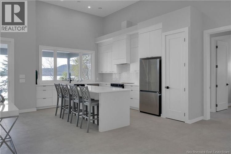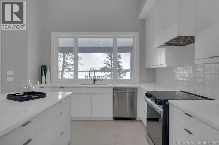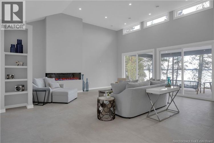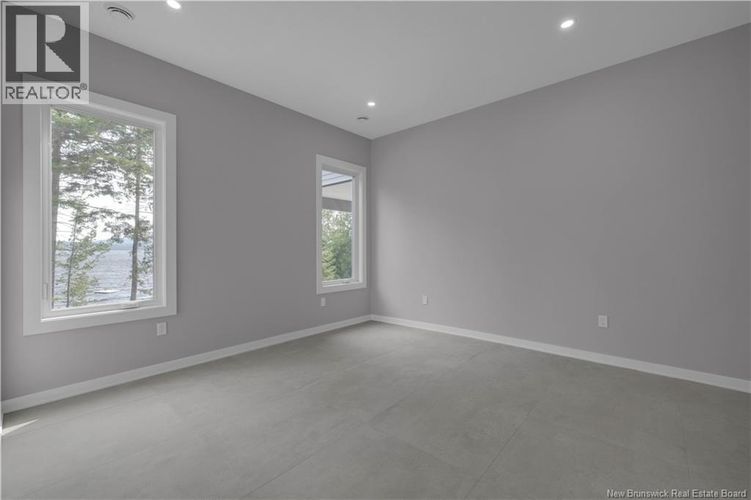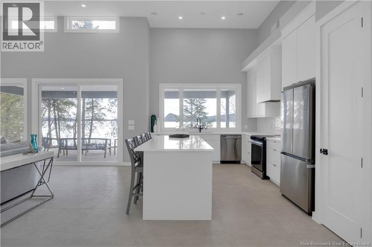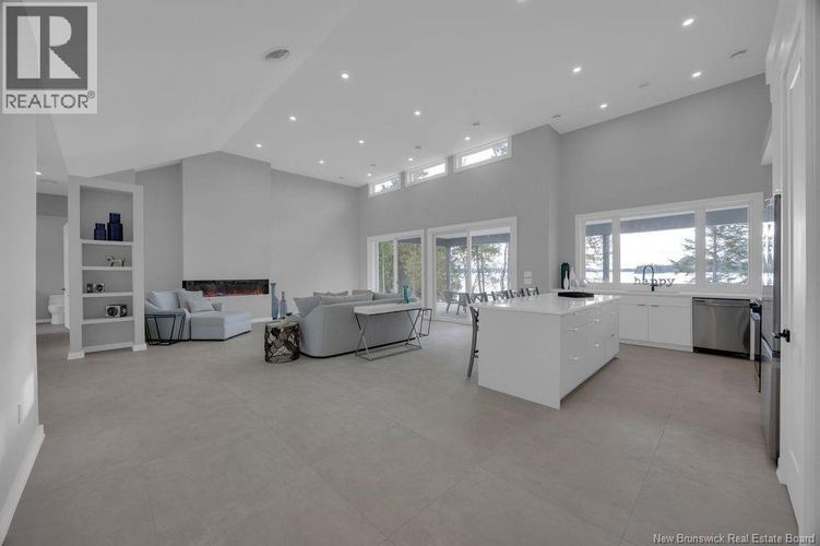 Discover this custom-built luxury bungalow in the exclusive gated community of Sandleigh Estates on beautiful Lake Utopia. Set on 2.42 landscaped acres with 233 ft of pristine waterfront, this newly built home offers exceptional privacy, comfort, and craftsmanship. Enjoy lakeside living with your own boat ramp, a peaceful stream, and breathtaking views from every angle. Built on an insulated concrete slab with energy-efficient materials, the home features Italian ceramic tile, custom woodwork, sound-proofed walls, a ducted heat pump, central vacuum, and a full water purification system. Inside, vaulted ceilings and expansive windows create a bright, open-concept living space. The gourmet kitchen includes quartz countertops, a large island, and brand-new appliances. The elegant living and dining area is highlighted by a beautiful Armenti fireplace, perfect for relaxing or entertaining. The spacious primary suite offers panoramic lake views, a spa-inspired ensuite with a glass-tiled shower, and a walk-in closet. Two additional bedrooms, a family bath, guest bath, full laundry room, and an oversized 2-car garage complete this thoughtfully designed home. Step outside to a covered patio ideal for outdoor dining and enjoying the natural surroundings. With luxury finishes throughout and nature at your doorstep, this property offers the perfect blend of elegance, tranquility, and lakefront living. (id:26452)