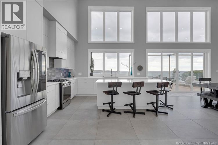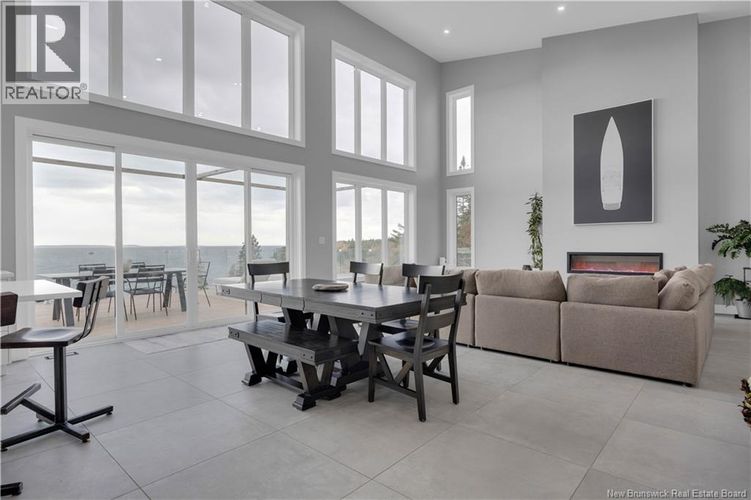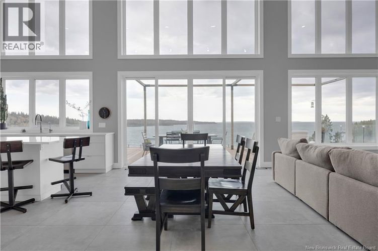 Experience luxury coastal living in this stunning oceanfront executive bungalow set on 5.75 acres of breathtaking shoreline. Step through the foyer into a bright, open-concept living space featuring cathedral ceilings and two stories of windows framing panoramic ocean views. The sleek white kitchen with a large island flows seamlessly into the dining area and living room, perfect for entertaining. The primary suite offers a spa-inspired ensuite and walk-in closet, while two additional bedrooms, including one with a unique loft space, a family bathroom, and main-level laundry complete the main floor. The walkout basement expands your living space with a huge family room, fourth bedroom, third full bathroom, two versatile bonus rooms ideal for an office or studio, and generous storage. On the expansive back deck enjoy watching whales, porpoise, seals, and bald eagles as you take in the ever-changing coastal scenery. A 2+ car attached completes this extraordinary oceanfront retreat. Located in the picturesque coastal community of Beaver Harbour, NB, this home offers the perfect blend of tranquility, natural beauty, and convenient access to nearby amenities and coastal attractions. (id:26452)