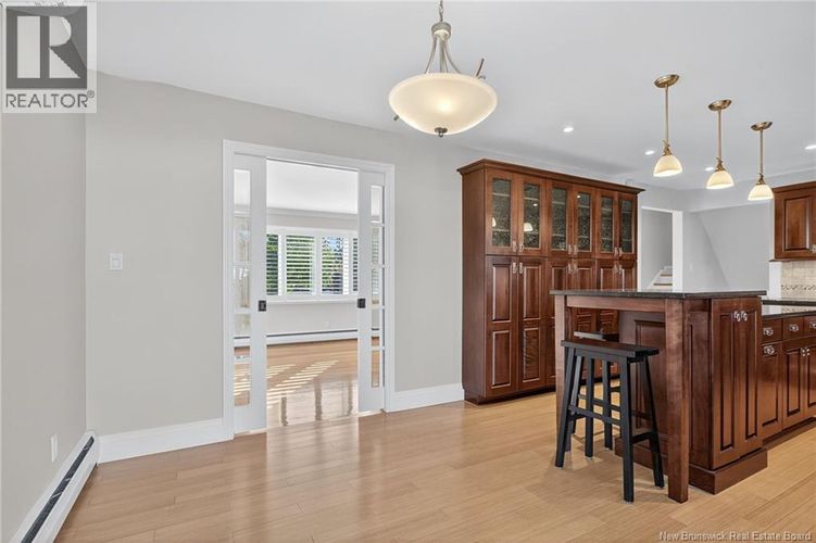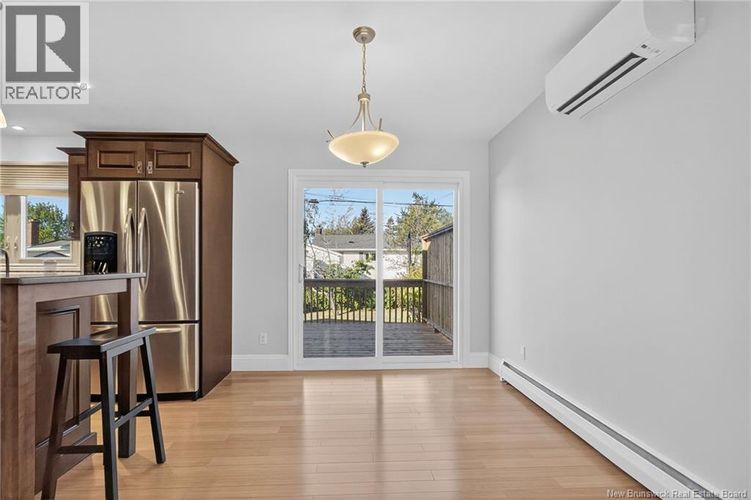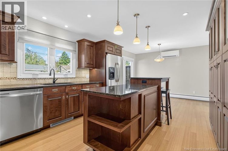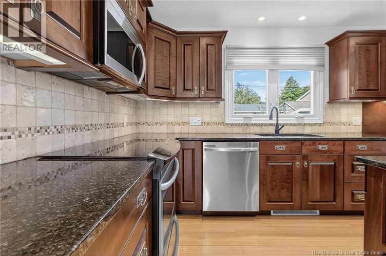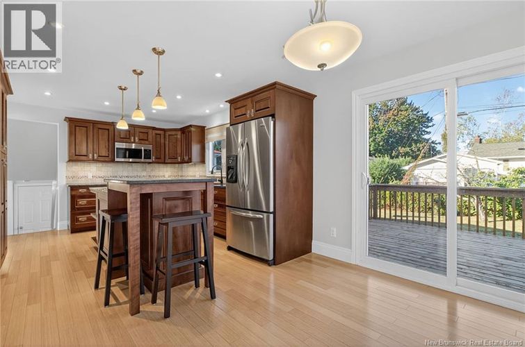Discover this well maintained 4-level split, strategically situated in Moncton's highly desirable West End community. This residence offers a well-designed floor plan ideal for modern family living, featuring 3+1 generously sized bedrooms and two complete bathrooms, complemented by an attached single-car garage. The main level is defined by an abundance of natural light in the comfortable living area, which seamlessly transitions into the combined kitchen and dining space with direct walk-out access to a rear wooden deck. The top-level hosts three well-proportioned bedrooms and a full shared bathroom. The mid-level introduces exceptional functionality, providing a valuable fourth bedroomeasily utilised as a dedicated home office or denalongside the second full bathroom and convenient direct access to both the attached garage and the backyard's impressive stamped concrete patio. The finished lower level expands the living area with a large, flexible family room, a dedicated laundry room, and ample storage. The exterior grounds are equally impressive, featuring a lovely front concrete patio and a backyard designed for entertaining, complete with the wooden deck, a stylish stamped concrete patio, and a powered storage shed. Location is a significant advantage, offering unparalleled convenience within walking distance of all three public schools: Bessborough School (K-5), Wabanaki Middle School (6-8), and Bernice MacNaughton High School (9-12). Book your Showing! (id:26452)