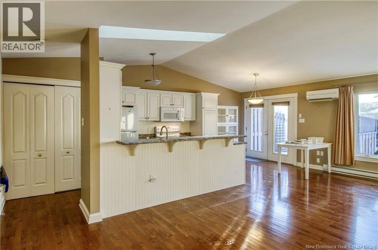 Welcome to 5 Windemere Crt, a maintenance-free garden home in one of the most desired neighbourhoods of Kennebecasis Valley. This bright, single-level living layout offers 2 bedrooms, 1.5 baths, two skylights and gorgeous hardwood floors throughout the main living areas. Enjoy year-round comfort with a heat pump and central vacuum. Downstairs is a finished basement with a utility room and a huge store room with shelving- perfect for hobbies or extra storage. Step outside to a very private deck with an awning for shade, plus a garage and easy-care yard. Ideal for downsizing or anyone wanting a simple, one-level lifestyle. (id:26452)