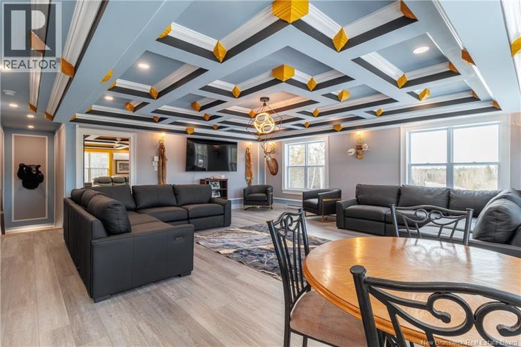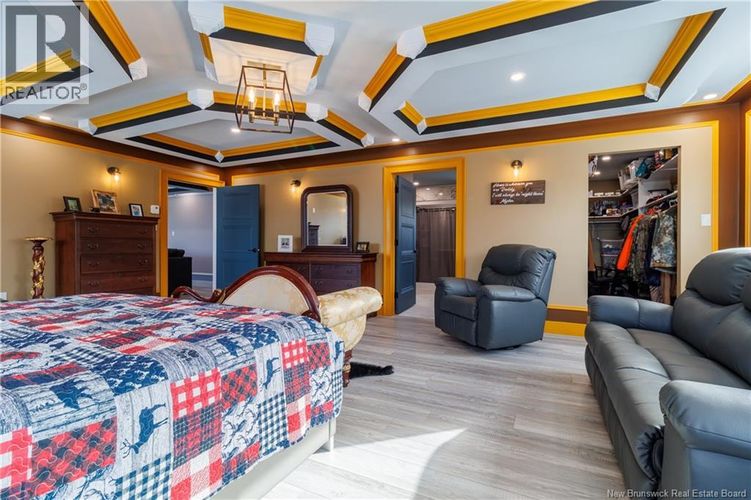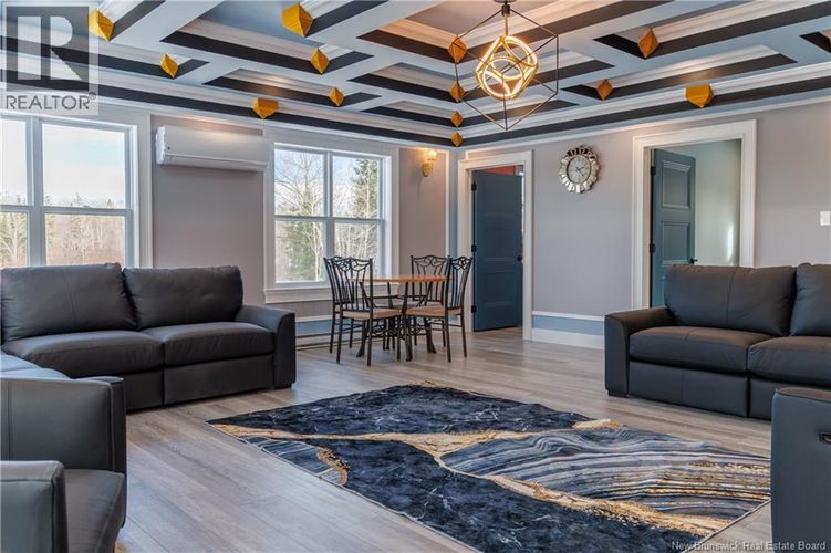 Welcome to your PRIVATE Oasis in the heart of Hoyt New Brunswick! This extraordinary property boasts an impressive 10 acres of breathtaking wooded area, providing you with the ultimate privacy and serenity. An outdoors lover dream. Step inside this magnificent two-storey home with five spacious bedrooms which includes The GRAND primary suite is located upstairs at a whopping 24x22 or choose to be on the main floor in the 2nd primary suite and three full bathrooms, there is plenty of room for your family and friends. The convenience of not one, but two laundry rooms adds a touch of luxury to your everyday life. Prepare to be wowed as you enter the custom kitchen, designed with both functionality and style in mind. From sleek granite countertops to custom cabinetry, this culinary masterpiece will surely inspire your inner chef. As you explore further, designer ceilings adorn each room, adding sophistication and elegance at every turn. Outside, immerse yourself in the manicured landscaping, ready for seed and the stamped concrete patio that wraps around the home that stuns. This remarkable property offers more than just a house; it presents an opportunity for endless possibilities. Note that Assessed value reflects vacant land only. **Lot to be subdivided from Parent PID at sellers' expense after closing*. Vendor is related to listing agent who is a Licensed REALTOR® with the Province of New Brunswick. (id:26452)