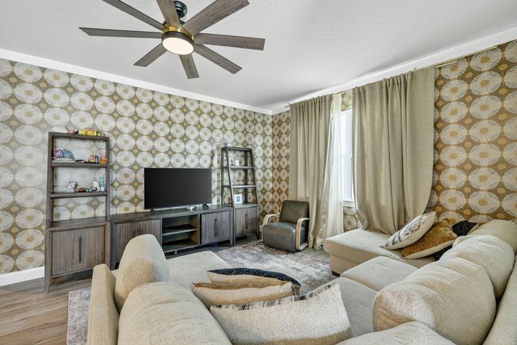 This stunning, new construction resale home, built in 2023, is located in the desirable Brystol at Wylder community, adjacent to Glylea Country Club. This spacious single-family home features 4 bedrooms and 2 bathrooms, all protected by impact windows and doors, providing both safety and energy efficiency.Step inside to discover a meticulously maintained home with modern amenities. The seamless gutters and sprinkler system make for easy exterior maintenance. The home is part of the Wylder master-planned community, offering resort-style amenities, scenic trails, and a beautiful lakefront area. With a 2-car garage and a thoughtful floor plan, this home is perfect for comfortable living and entertaining.