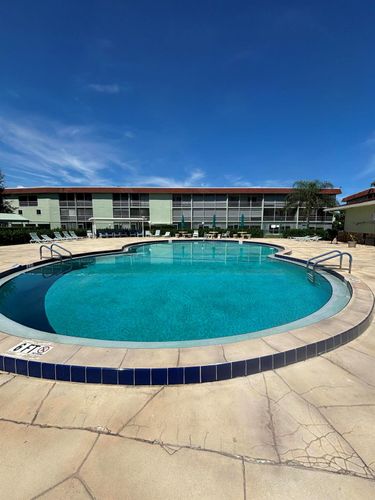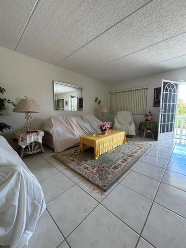 Discover the charm of Regal Palms, a welcoming 55+ community. This second-floor condo offers a relaxing clubhouse view that you can enjoy from your private balcony, perfect for unwinding with a morning coffee or evening breeze. The community features beautifully maintained grounds, a clubhouse, pool, and other amenities designed for comfort and convenience. Located just minutes from Palm Beach International Airport, shopping, and dining, it's an ideal spot for easy living. The unit is being sold as-is, giving you the chance to update and create a space tailored to your style. On-site laundry adds everyday practicality to this peaceful retreat.