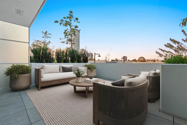 Georgetown One by Anthem in the core of Surrey City Center. Walking distance to amenities including shops, restaurants, Surrey Central SkyTrain station, SFU or KPU campuses, the future UBC campus and numerous parks. 30,000 sqft of amenities include entertaining lounge, co-work space, outdoor theatre, dog run, fitness centre and guest suite. Efficiently well laid out 2-level concrete 3 bedroom and den townhome featuring an L shape kitchen with island, spacious pantry and 30" BOSCH and BLOMBERG appliance package. Den is spacious enough to be used as 4th bedroom. 3 bedrooms upstairs. The front door and generous outdoor terraces, perfect for outdoor entertaining. OPEN HOUSE: May 4 Sun 2-4PM