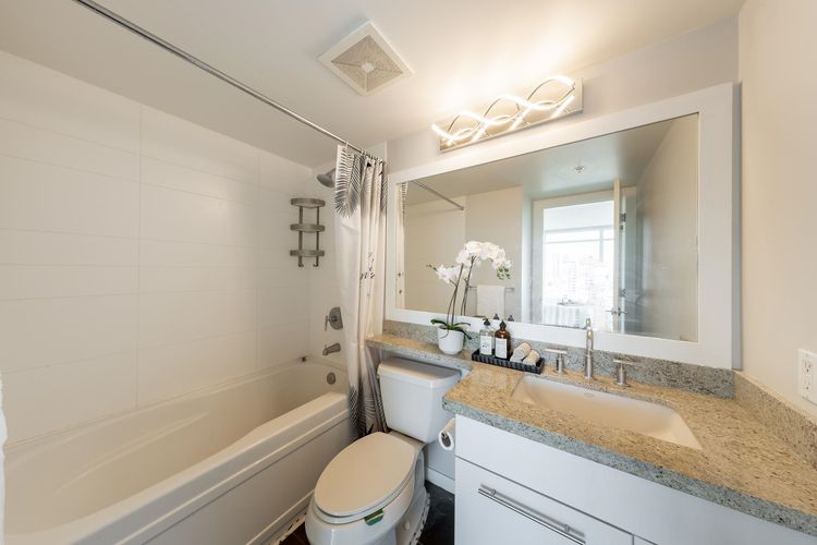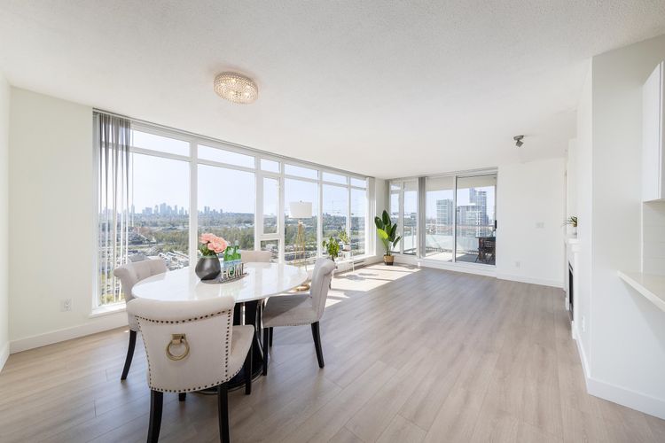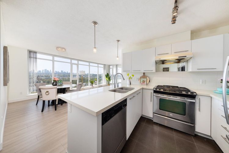 Priced to sell! Quality built by the reputable developer Ledingham McAllister, this south-west CORNER unit features an UNOBSTRUCTED PANORAMIC VIEWS of the city and MOUNT BAKER plus the most functional floor plan: Two separated bedrooms, Two ensuites and One open den. Completed with FRESH PAINT, NEW WINDOW BLINDS, and NEW HIGH QUALITY laminate wood flooring. Amenities includes concierge, party room with full kitchen, gym room, game room, EV charging stations, children playground, and car wash area. Walking distance to Brentwood Mall and SkyTrain. Minutes drive to Costco, BCIT, and more. 1 parking 1 storage locker included. Move in ready!