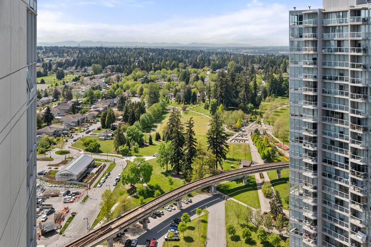 Prime Location! Concrete Building built by well known Concord Pacific-Park Place 2. This 1 bedroom 529 sq. ft unit is located on 34th floor with stunning views of City and Mountains. Steps away from King George skytrain station, shopping mall, T&T, Walmart. Walking distance to SFU, recreation center and hundreds of restaurants. Amenities include 24 hours Concierge service, fully equipped gym, yoga studio, movie theatre, event lounge, 2 bowling lanes, Party room with billiards table and kitchen.