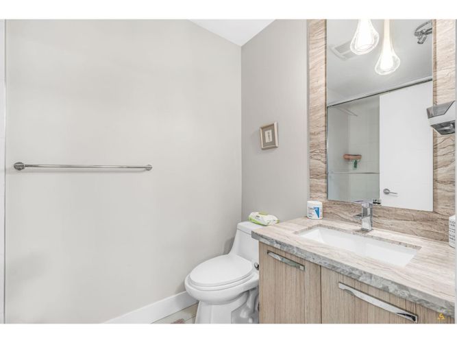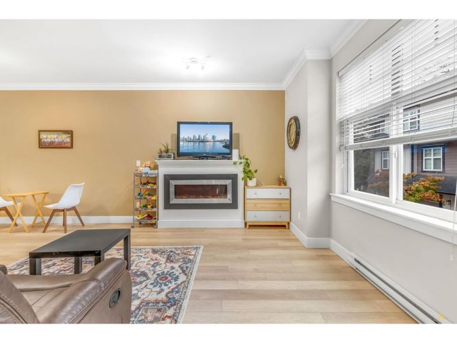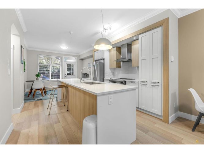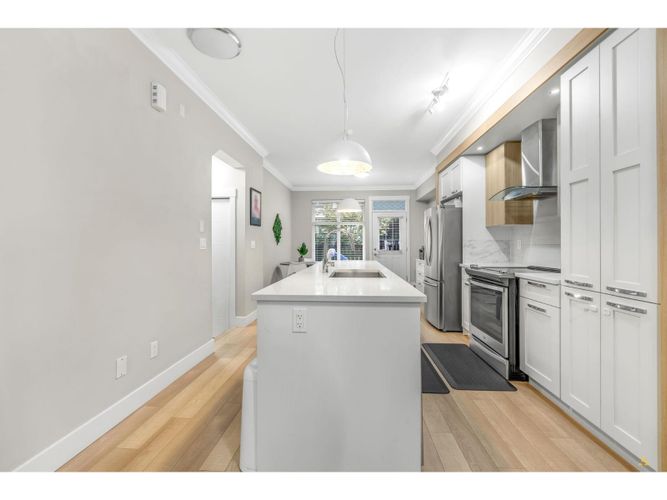 North-facing Unit in CANVAS . McLeod Traditional School is a step away! This location is where you want to be! Both beautiful and functional, this home features a gorgeous galley kitchen with a tall pantry, quartz countertops, S/S appliances, and a large undermount sink. There’s an open great room with a fireplace, and a main floor powder room on main floor. There’s an inviting walk-out patio to a large fenced yard. This home is beautifully finished with crown moulding, marble countertops in all the bathrooms, laminate flooring on the main, and a roughed-in central vacuum. This is a kid-friendly playground in the complex and a backyard with ample sunlight for kids to play. It’s close to Sullivan Heights Secondary and Woodward Hill Elementary school, within walking distance..