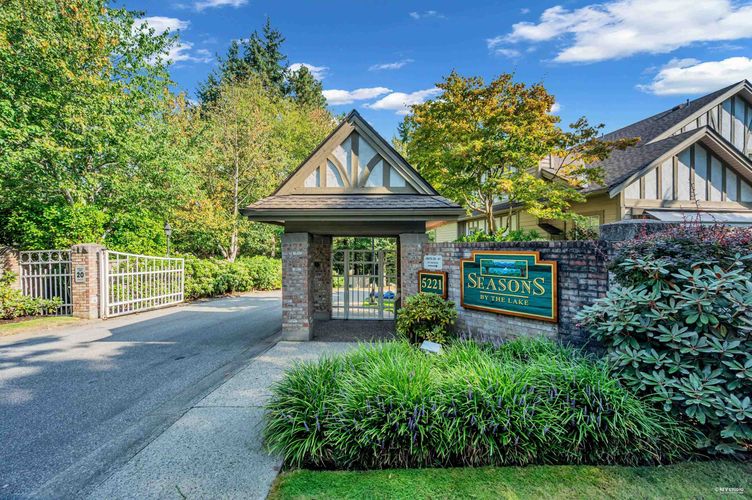 Prestigious gated community “Seasons by the Lake” beside Deer Lake trails! This fully renovated 2-level townhome offers 2,695 sq.ft. of luxury living w/ radiant in-floor heating & soaring 18-ft vaulted ceilings. Elegant living & dining, gourmet kitchen w/ SS appliances, breakfast nook & large balcony w/ lush views. Features 3 spacious bedrooms + versatile den (4th bdrm option), spa-inspired primary ensuite & an enormous rec/entertainment room ideal for theatre, gym or family use. Perfect location - mins to Metrotown, Skytrain & Hwy 1. Rare opportunity in sought-after Oakmount community!