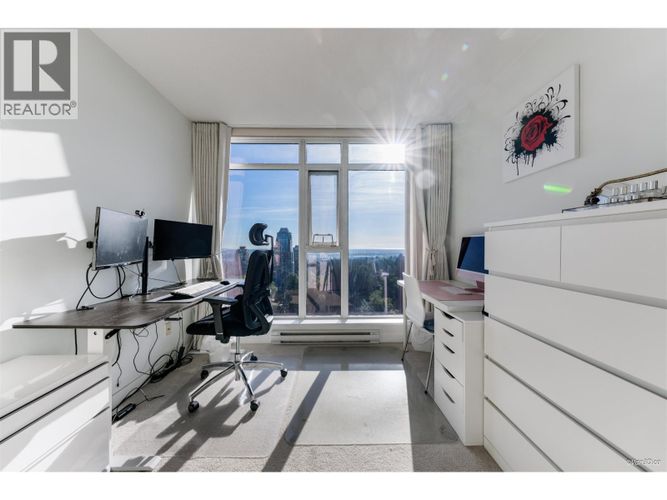 UNOBSTRUCTED PANORAMIC CITY & PARK VIEW! Open layout spacious 2 bdrm 2 bath in Reflections. Gourmet kitchen w/gas stove, shaker white cabinets, S/S appliances & quartz counters. The master is a generous size w/walk in closet & 4 piece ensuite, both bdrms & LVRM offer floor to ceiling windows to take advantage of the amazing views. Renovations: wood flooring in 2022; remote controlled electrical luxurious blinds costing over $7000 in 2025; new tap water filter in kitchen. Built by Ledingham McAllister in 2012, boasting many amenties incl 2 elevators, large well equipped gym, meeting room, rec centre & guest suite. Walking distance to Edmonds skytrain Station, bus stops, schools. centrally located - close to shopping, parks & restaurants.