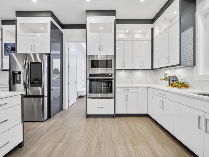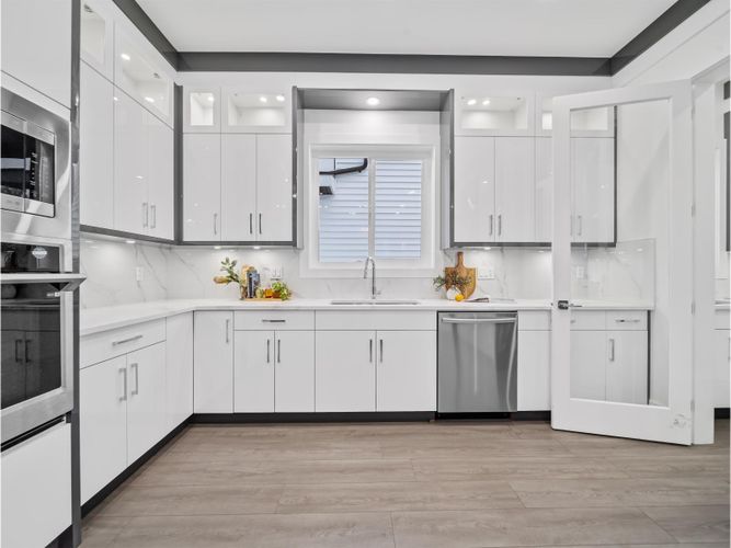 Welcome to this BRAND NEW 7 bed 6 full bath 3 storey luxury home with an impressive 47 feet wide frontage in the most desirable neighbourhood of Fraser Heights! Property contains proper big 4 bedrooms 3 bathrooms upstairs & 1 bedroom + full bath on the main level which works conveniently for elders. Luxury features like Quartz countertops, Acrylic cabinets, lots of pot lights, LED lights integrated within beautiful ceiling drops, AC, HRV, radiant heating, security system with cameras, a bonus prayer room on the main level which may be used as an office space, and custom millwork and feature walls throughout the house! School Catchment: Bothwell Elementary, Fraser Heights Secondary, and the prestigious Pacific Academy! 2 mortgage helpers potential! *OPEN HOUSE: SUN(Oct 26) 2-4PM*