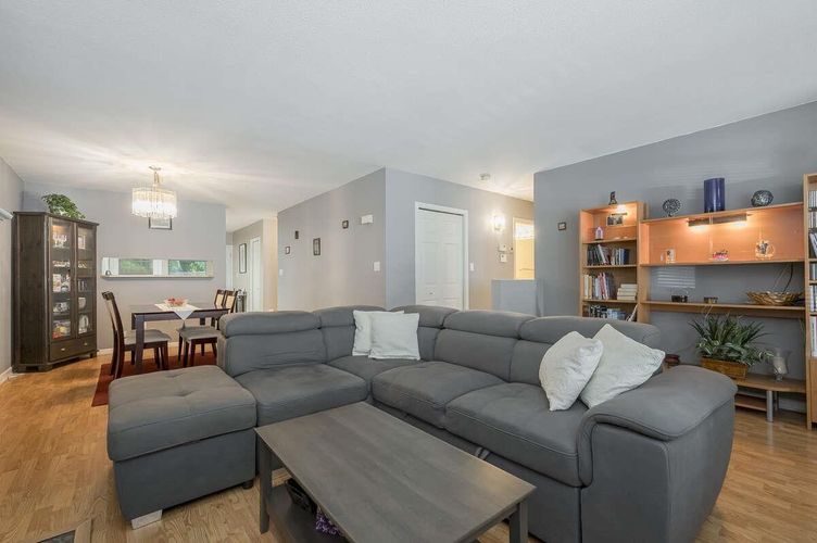 For more information, click the Brochure button. Great location! 2 large bedrooms 2 full bathrooms 1354sf ground floor home - No stairs! Walk into your large living room with gas fireplace, dining room. Leads to your spacious well laid out kitchen with eating area and access to 1 of your private fenced patios with natural gas hook up for BBQ. Your primary bedroom is massive and has access to another private fenced patio, plus a big walk-in closet & 3pc ensuite with shower. There's another bedroom and 4pc bathroom. Laundry area with full sized side-by-side washer & dryer. Radiant in-floor heating. Single garage & a designated parking spot next to kitchen entrance. Close to many shopping areas, restaurants, transit, highway 1, nature trails, schools. All measurements are approximate. (id:26452)
