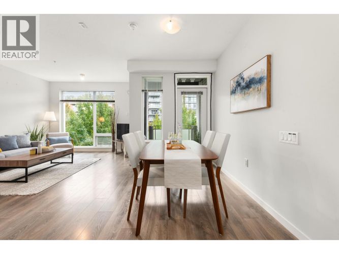 Welcome to R+R by Polygon, which is located in the highly sought-after River District community. This stunning 2 bed, 2 bath condo offers 890 sqft of interior living space with high ceilings and radiant floor heating. Featuring a open gourmet kitchen with stainless steel appliances, gas range, quartz countertops. Spa-like bathrooms and en-suite features double vanity plus stand-up shower. The pet-friendly building includes a dedicated dog wash station and a fully equipped gym. Just steps away from the new Kinross Park playground, the Fraser Foreshore Trail, Romer's Burger Bar, Starbucks, banks, Save-On-Foods, etc. 1 parking and 1 locker included. Call to book your private viewing! (id:26452)
